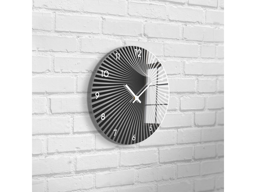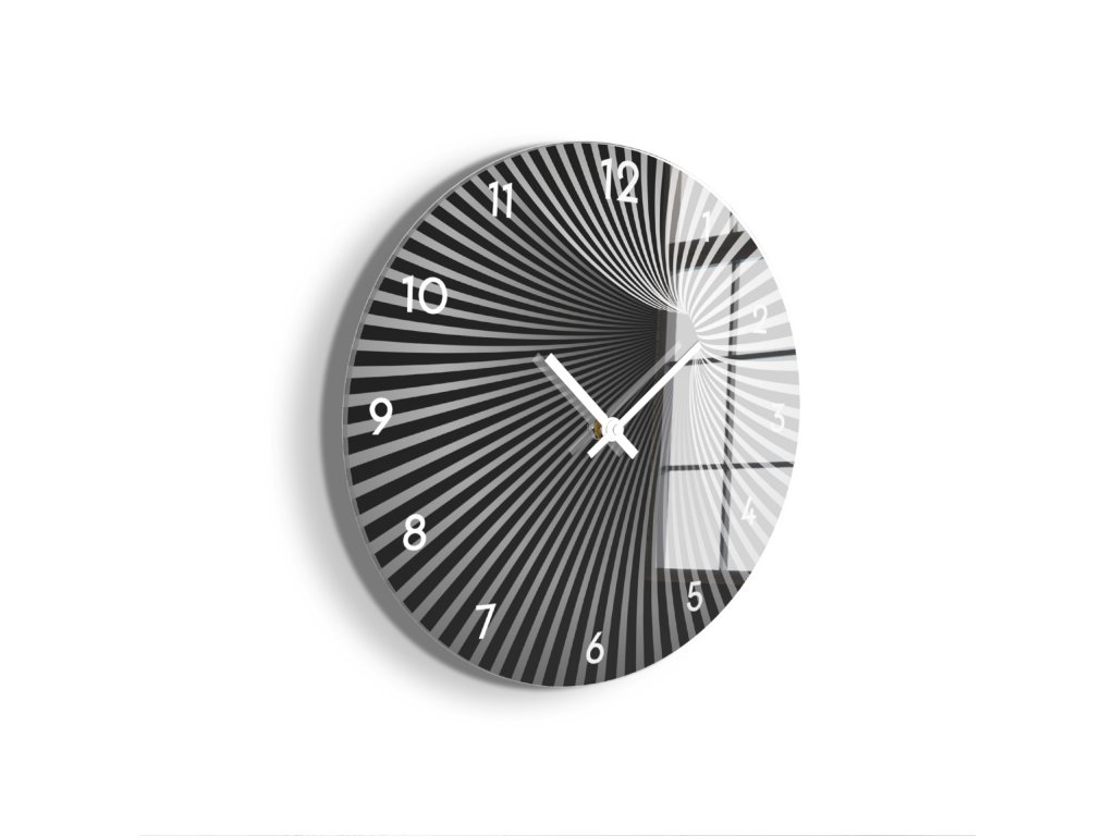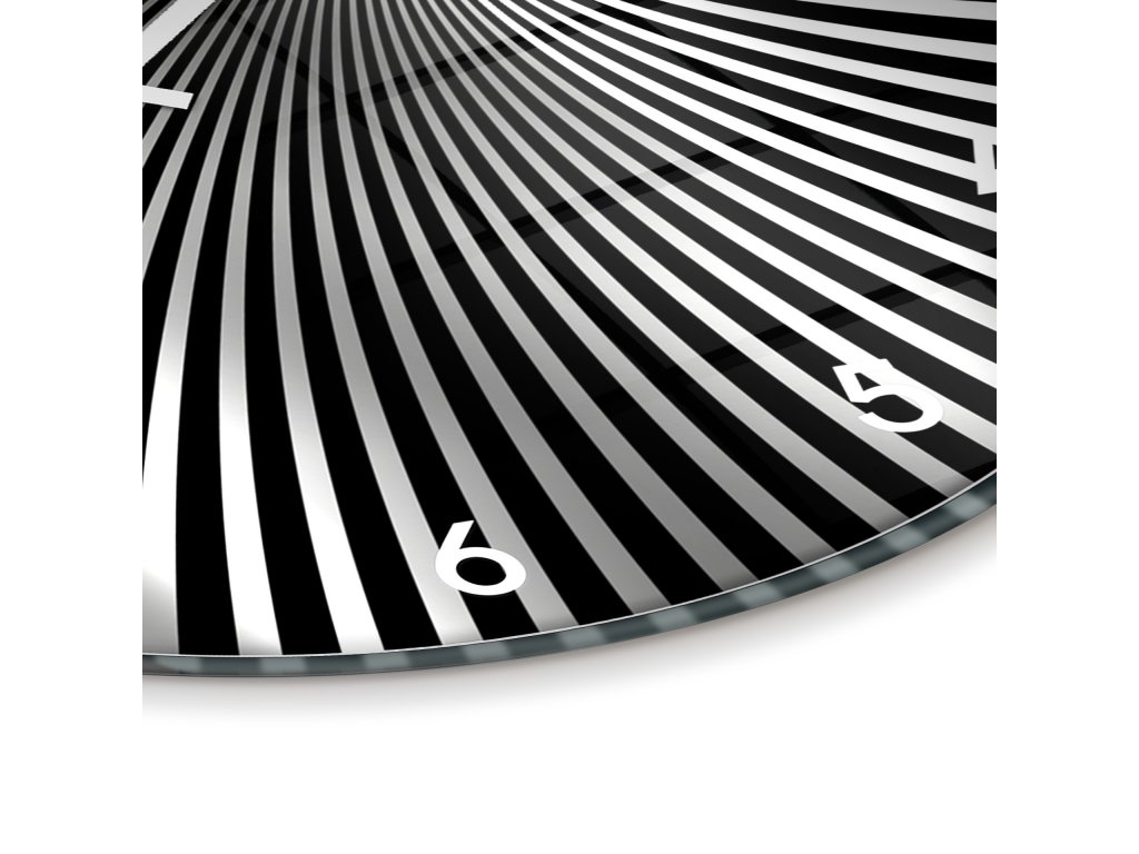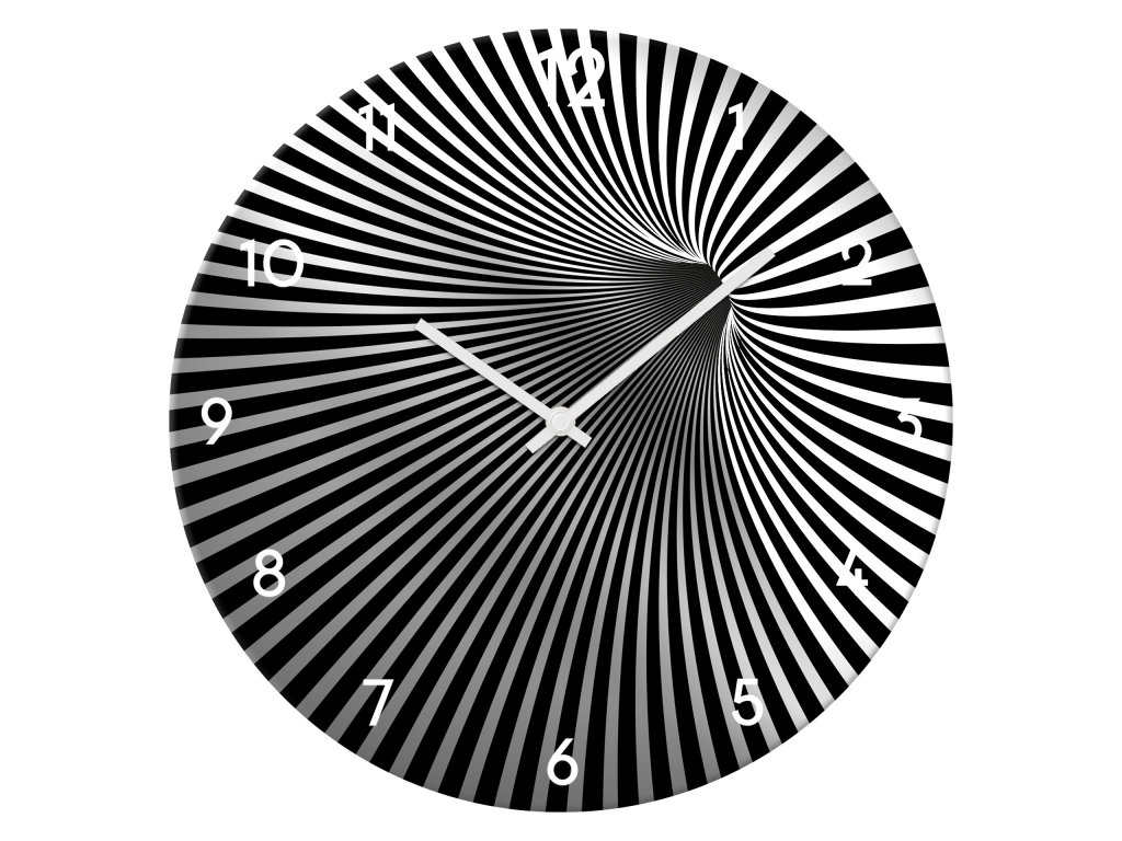 Nástěnné skleněné hodiny v bílo-černém trychtýřovém designu vhodné do jakékoliv místnosti.