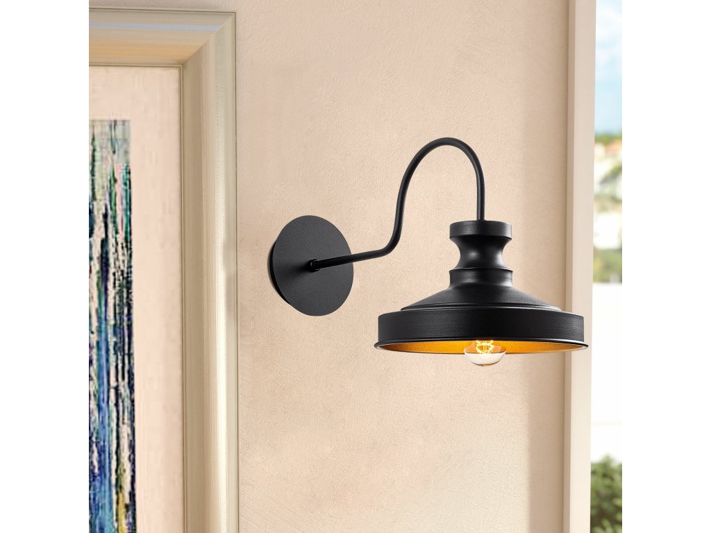 Z drobné základny na úzkém rameni vyčnívající robustnější matně černé stínítko pasuje nástěnné osvětlení BERCESTE do industriálního stylu.