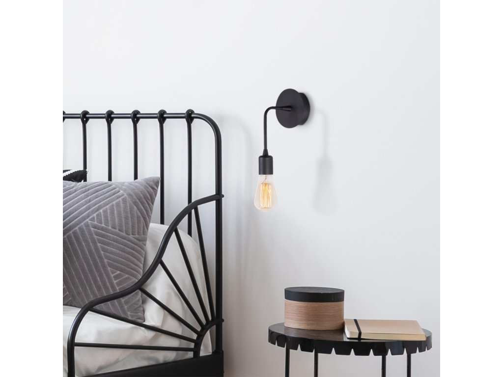 Nástěnné osvětlení DARTINI v dekoru černé barvy je tvořeno malou základnou, z níž krátké ohnuté rameno nese objímku se žárovou.