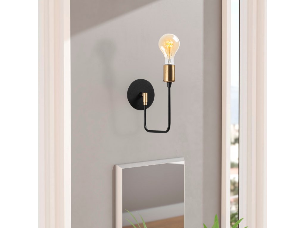 Kovové tělo a žárovka elegantně zdůrazněno černou a zlatou barvou je vše, co tvoří toto nástěnné světlo DOLMA.