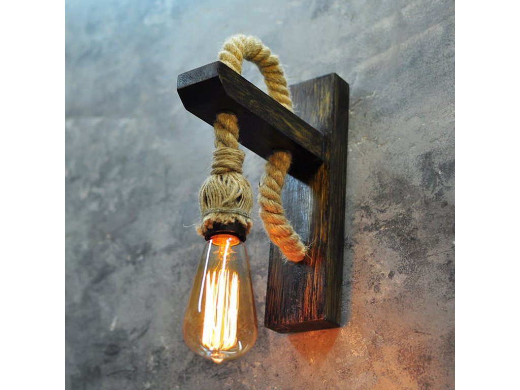 PP157 je nástěnné osvětlení vyrobené ze smrkového dřeva, kterým je protknuté lano v přírodní barvě nesoucí objímku.