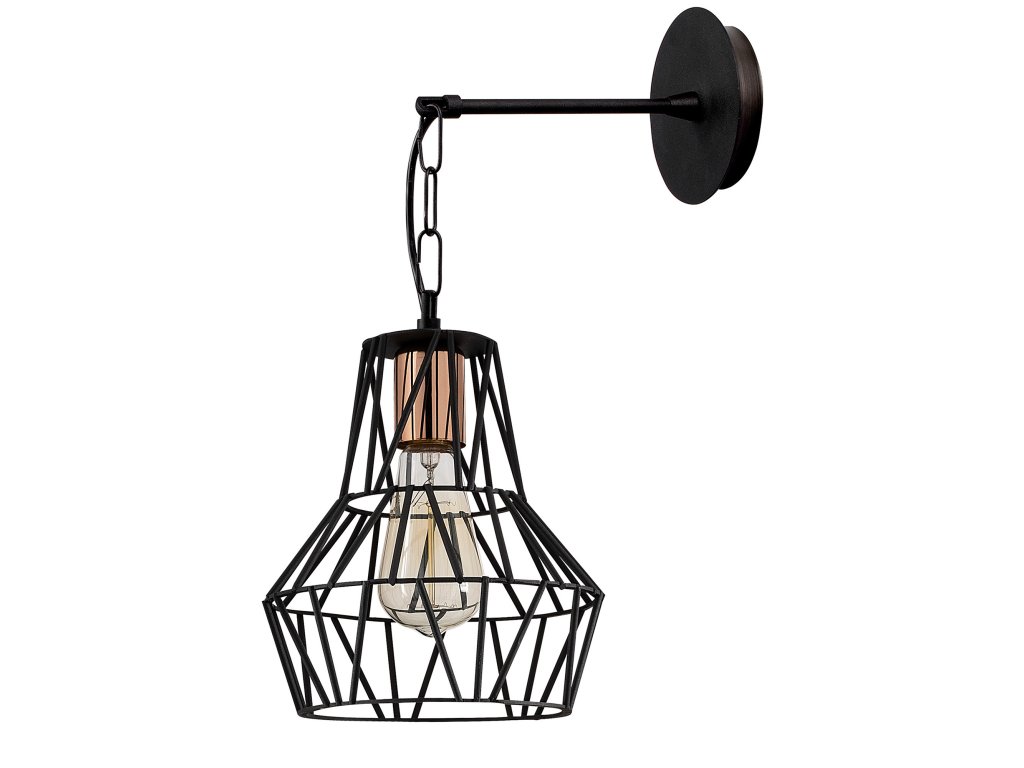 Nástěnné osvětlení TORTUM je vyrobeno ze tří částí: z malé základny, řetízku a z velkého drátěného stínítka ve kterém se ukrývá mosazná objímka.