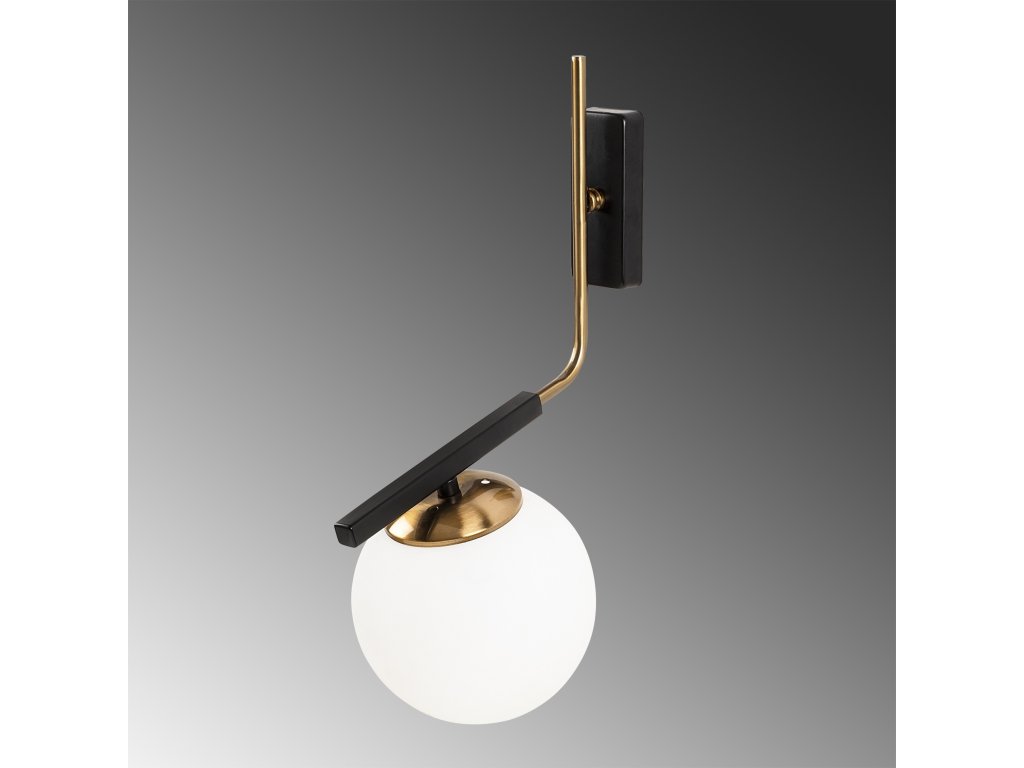 Lomené zlaté rameno nesoucí bílé stínítko je ukotveno v černé základně, která barevně ladí s koncem ramene.