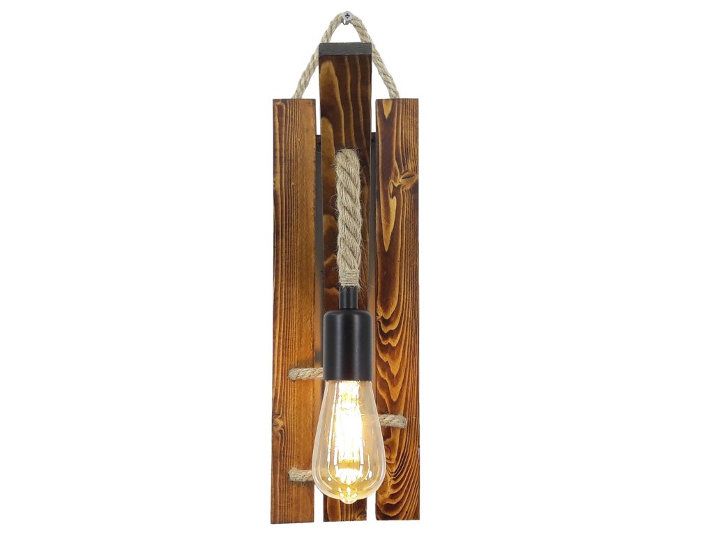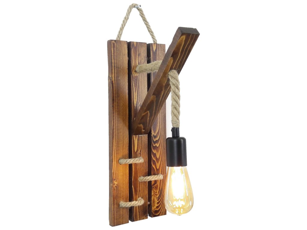 Rustikální nástěnné svítidlo vyrobené z kombinace dřeva a provazu.