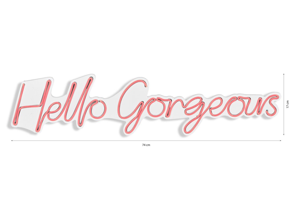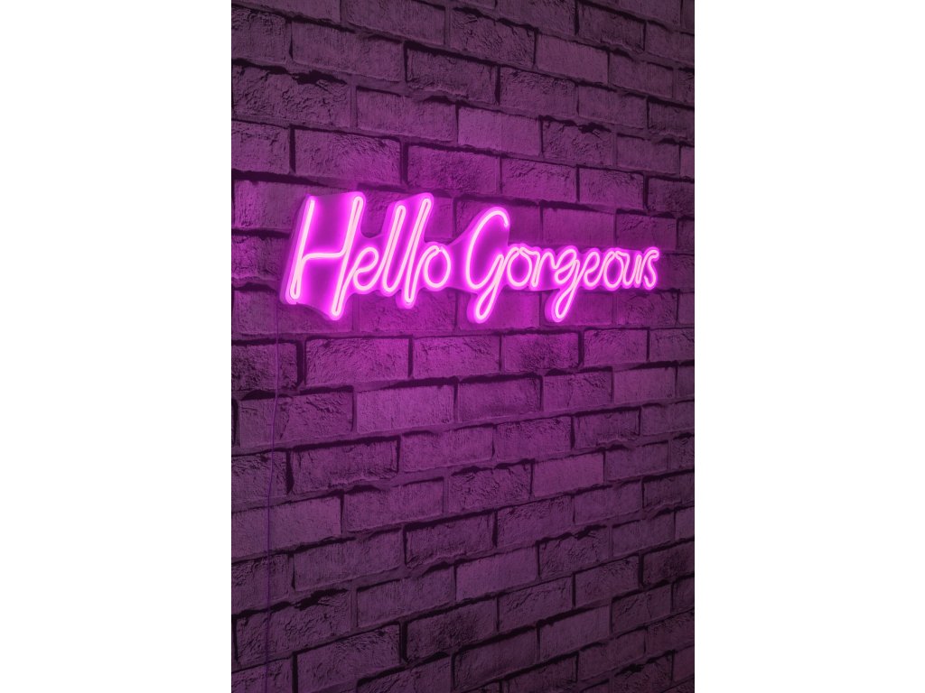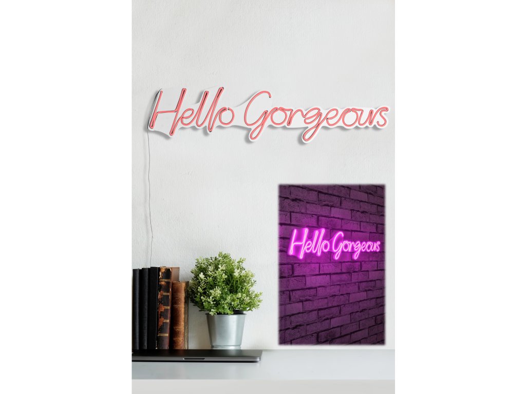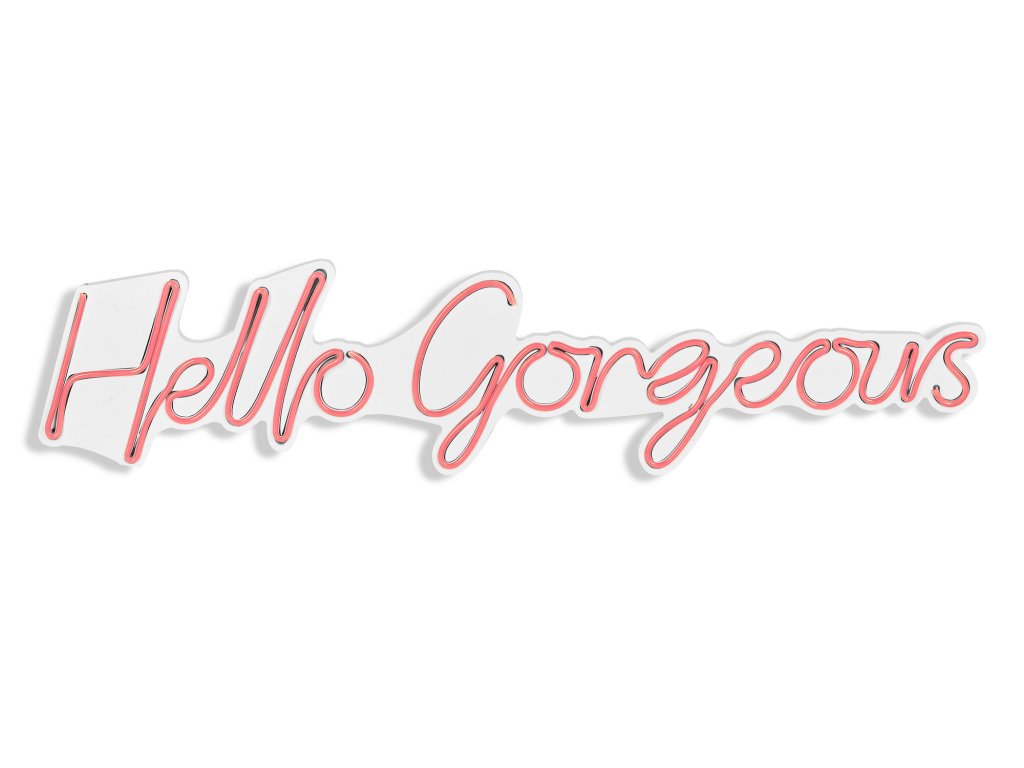 Nástěnný dekorační nápis HELLO GORGEOUS s led osvětlením, růžový.