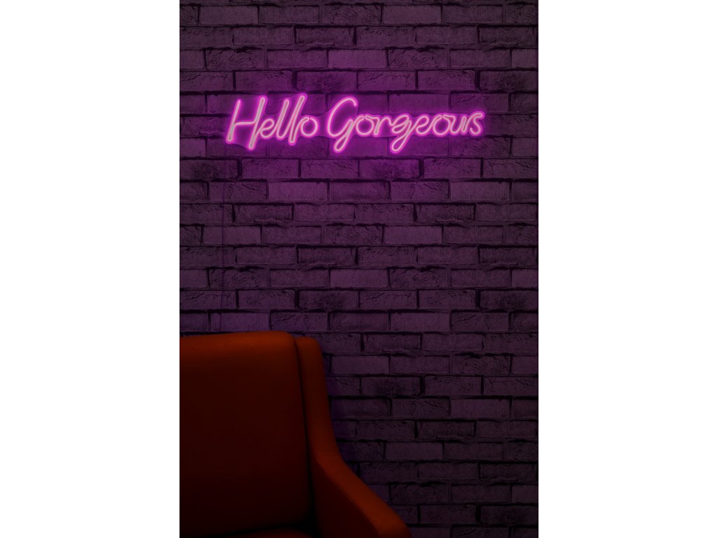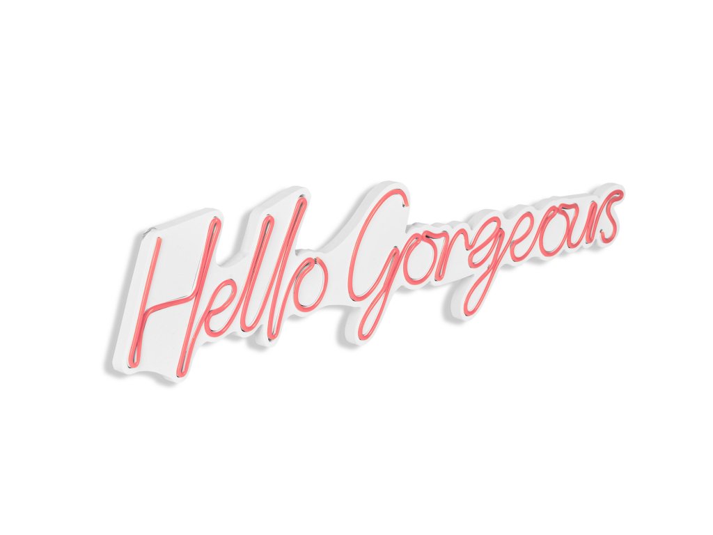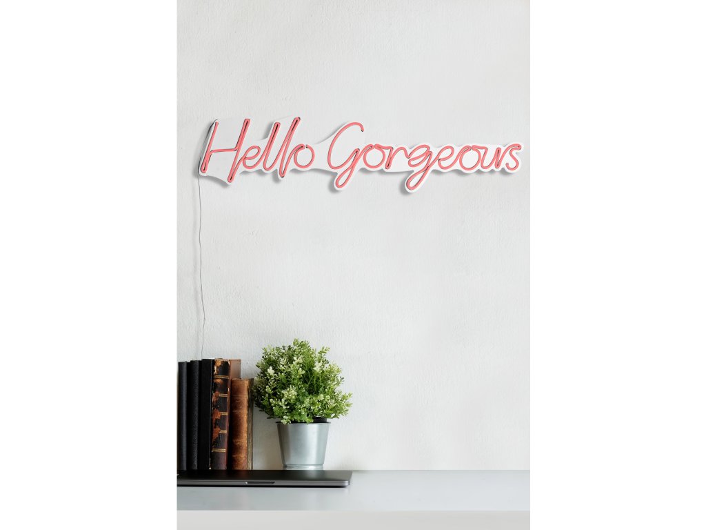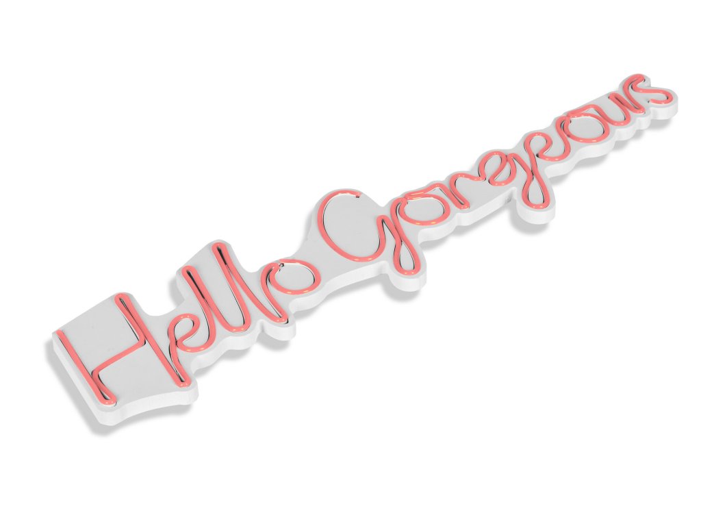 Nástěnný dekorační nápis HELLO GORGEOUS s led osvětlením, růžový.
