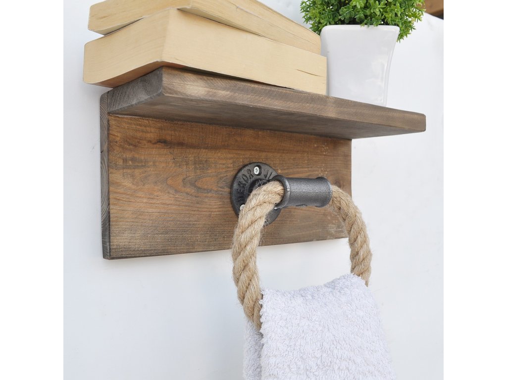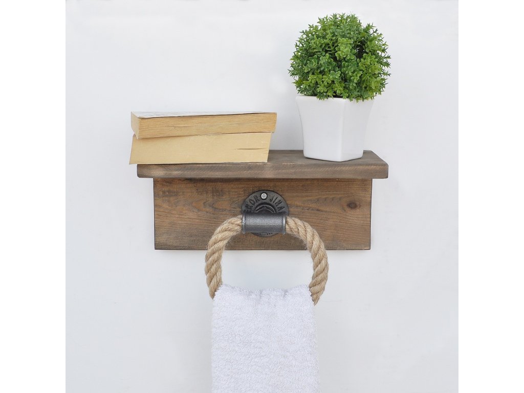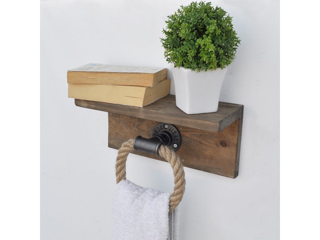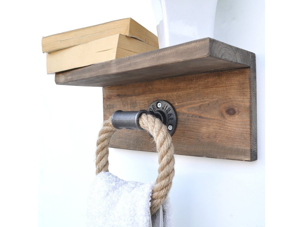 Nástěnný věšák na ručníky BORURAF s poličkou na odložení drobností. Věšák vás překvapí svým nápaditým vzhledem vodovodních trubek.