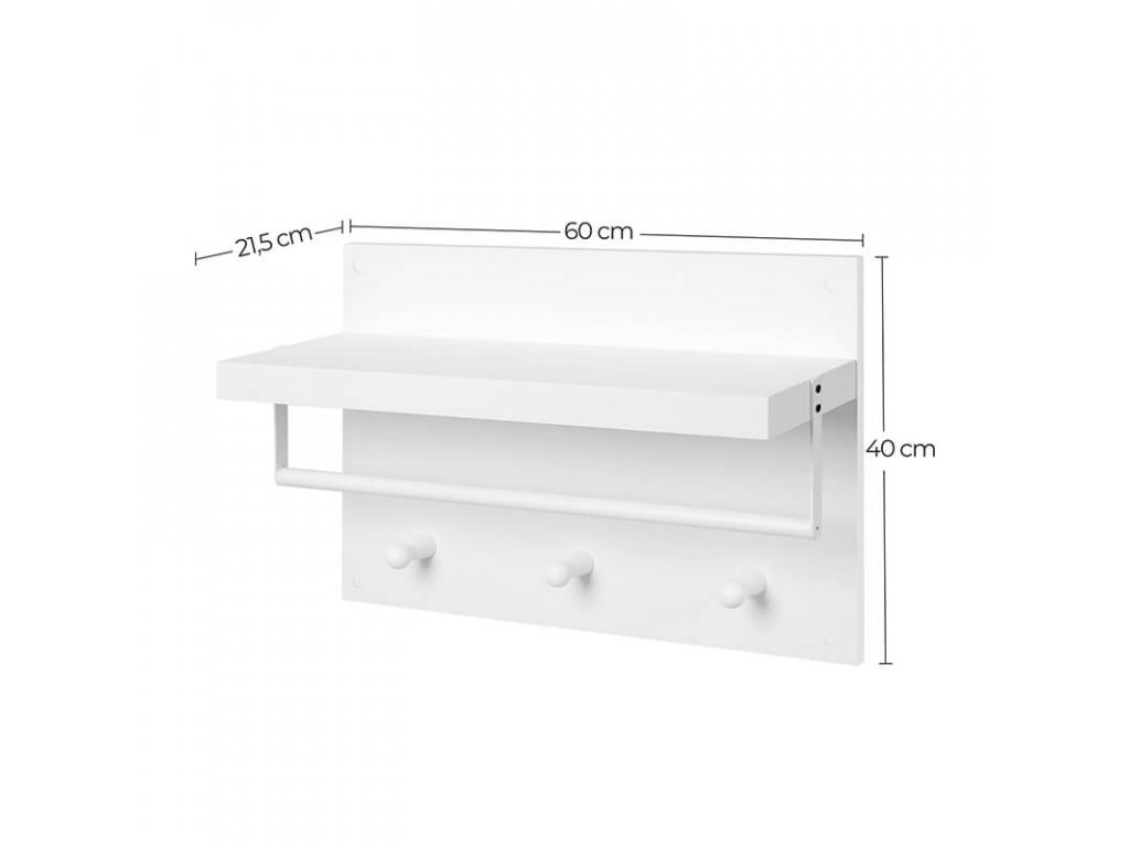 Nástěnný věšák s policí bílý 3 háčky 60 x 40 x 21 cm