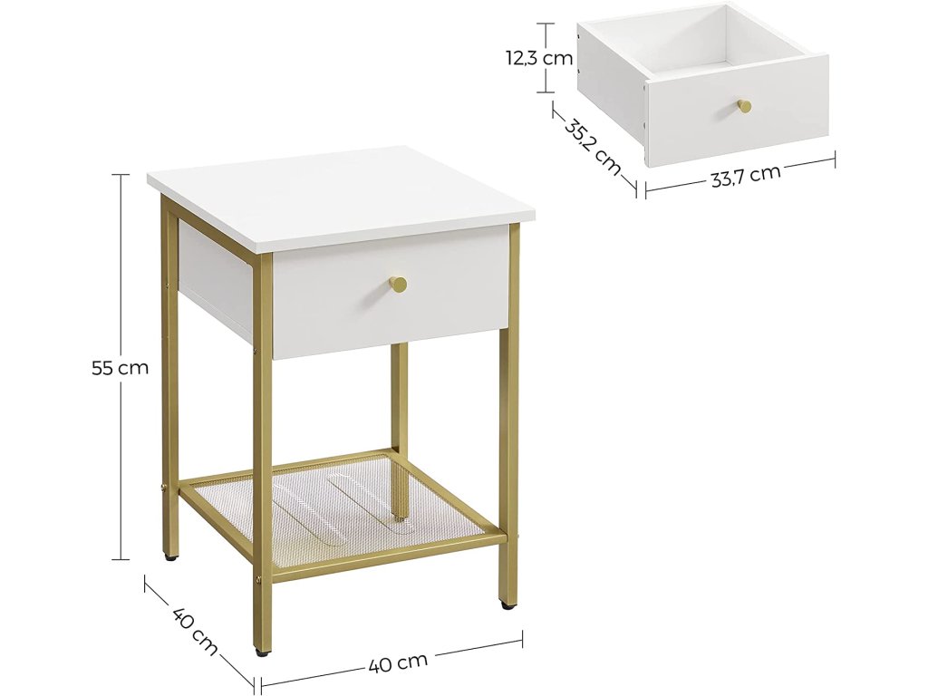 Noční stolek 1 zásuvka 40x40x55cm bílý zlatý