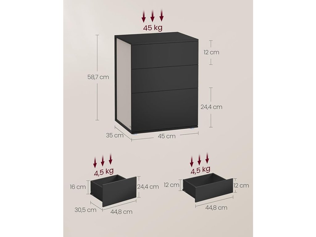 Noční stolek tři zásuvky 45 x 59 x 35 cm černá béžová