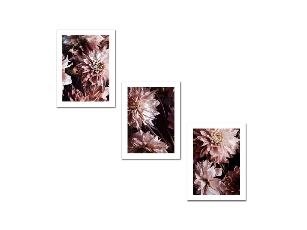 Obraz na MDF 3ks RŮŽOVÉ ASTRY 30 x 40 cm