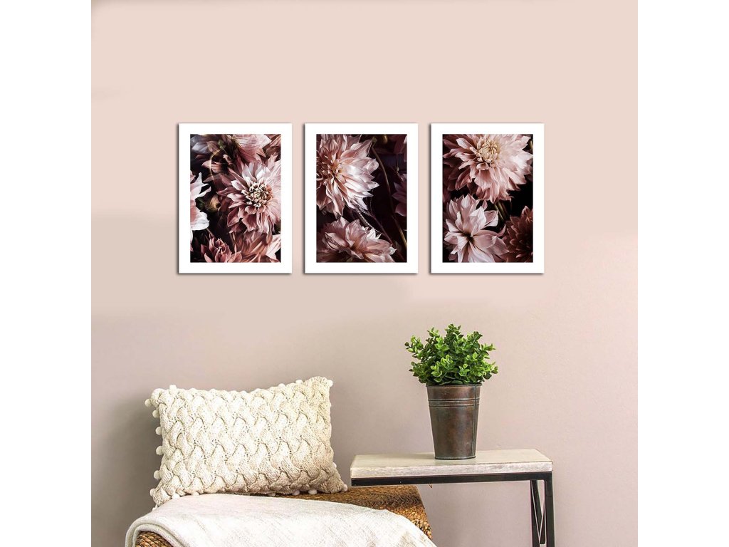 S tímto okouzlujícím uměleckým dílem rozkvetou místnosti krásou a šarmem. Nechte třídílný obraz s růžovými květy aster, aby proměnil váš prostor v elegantní květinový ráj!