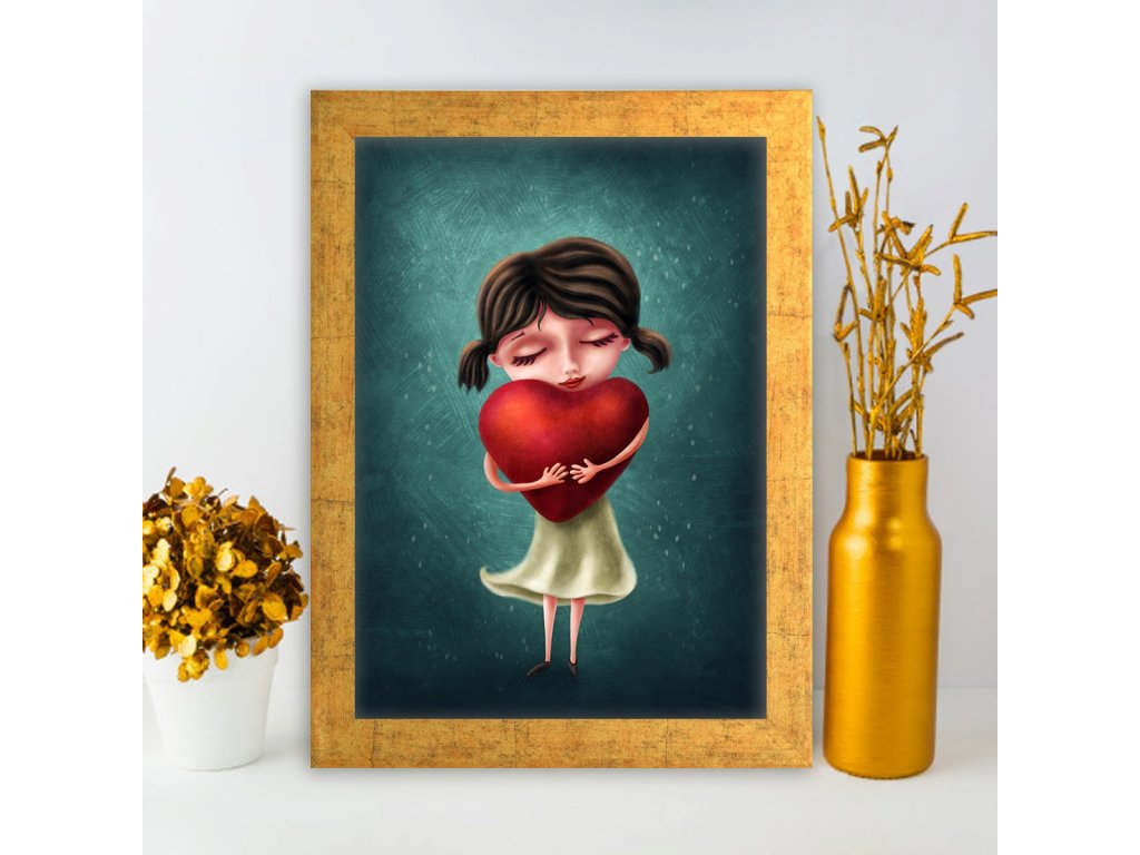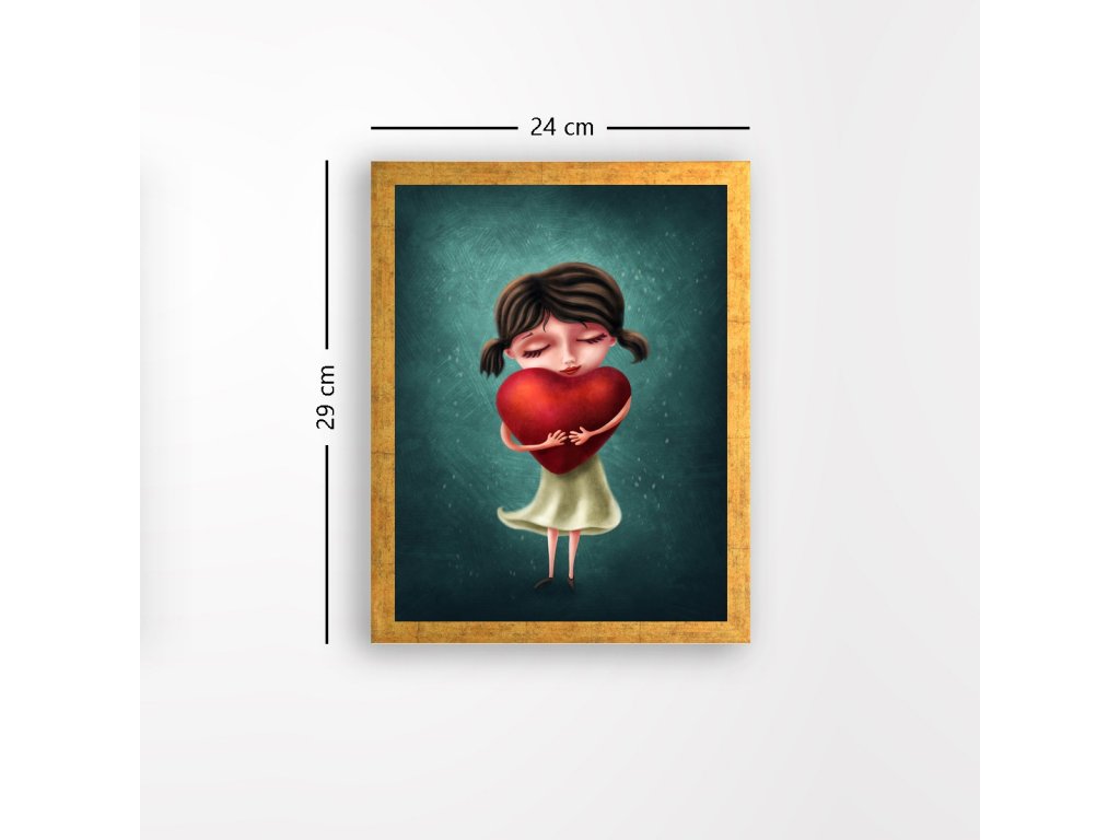 Obraz na MDF s rámem DÍVKA S VELKÝM SRDCEM 24 x 29 cm