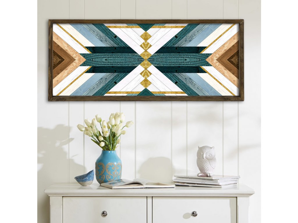 Obraz na MDF s rámem DŘEVĚNÝ PATCHWORK 120 x 40 cm