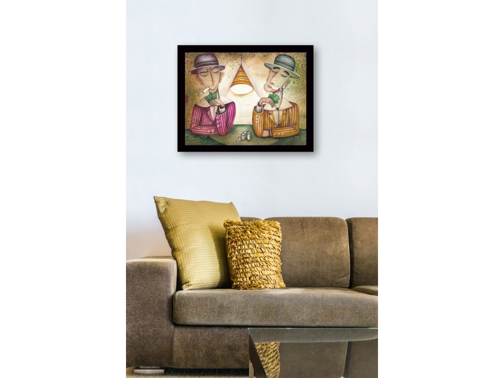 Obraz na MDF s rámem DVA HRÁČI KARET 56 x 41 cm