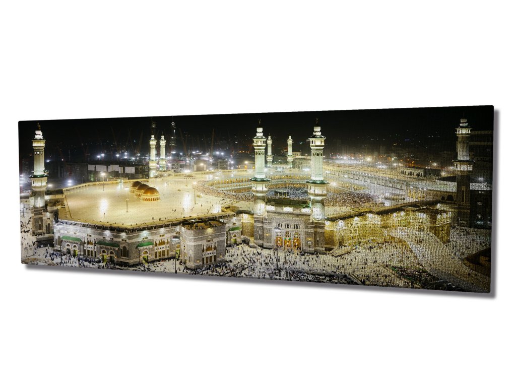 Vstupte do světa úchvatné krásy a výrazu víry s tímto úžasným obrazem na plátně. Toto podmanivé mistrovské dílo zachycuje největší mešitu na světě, Al-Masdžid al-Harám, nejposvátnější místo islámu. Díky zářivým zlatým barvám a množství světel vás tento kousek přenese na místo čirého úžasu.