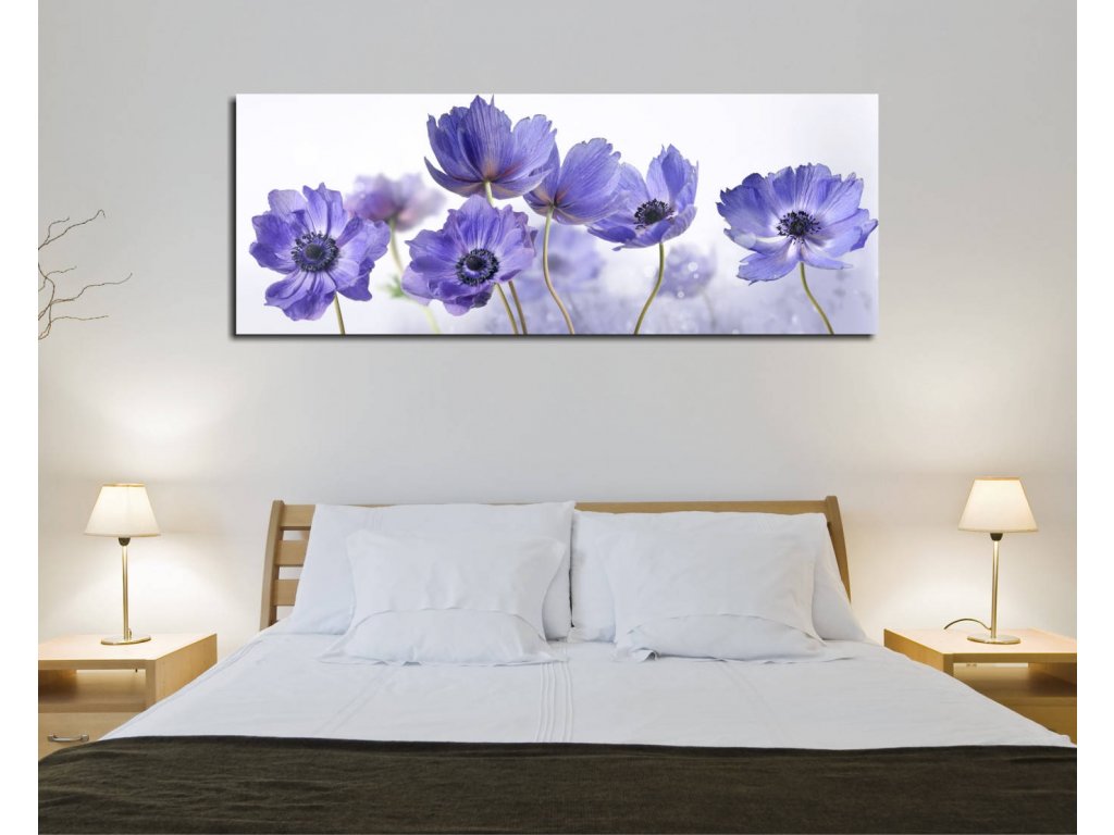 Obraz na plátně MODRÉ KVĚTY 80 x 30 cm