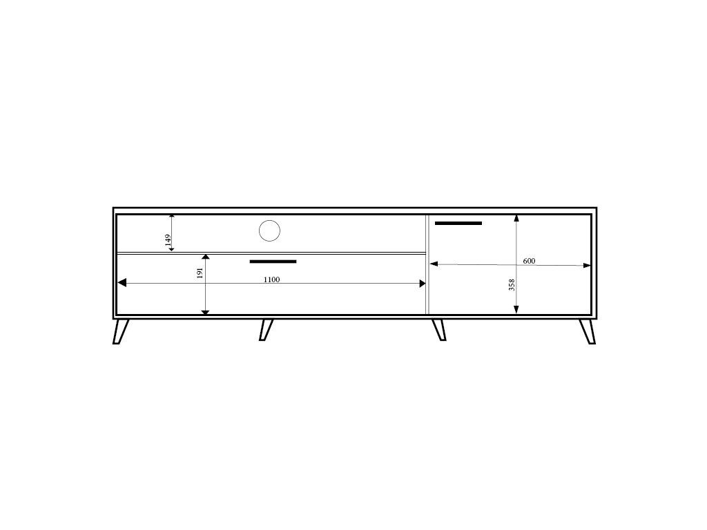 - TV stolek: 52 cm × 177 cm × 45 cm (V׊×H)