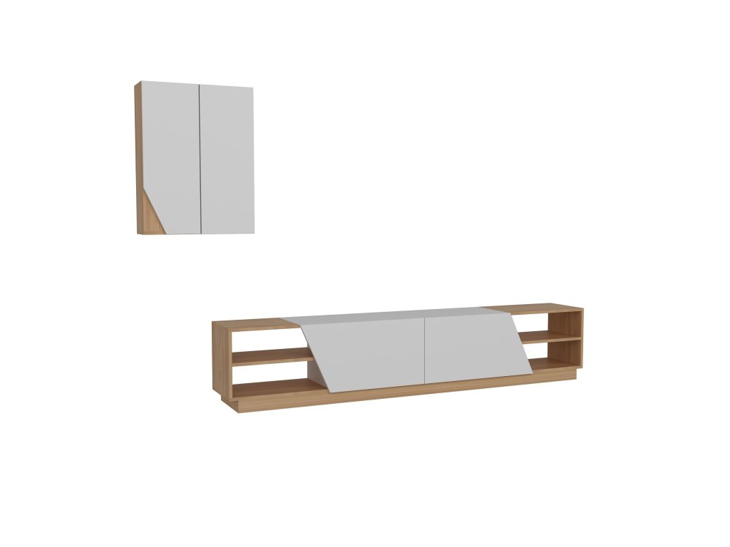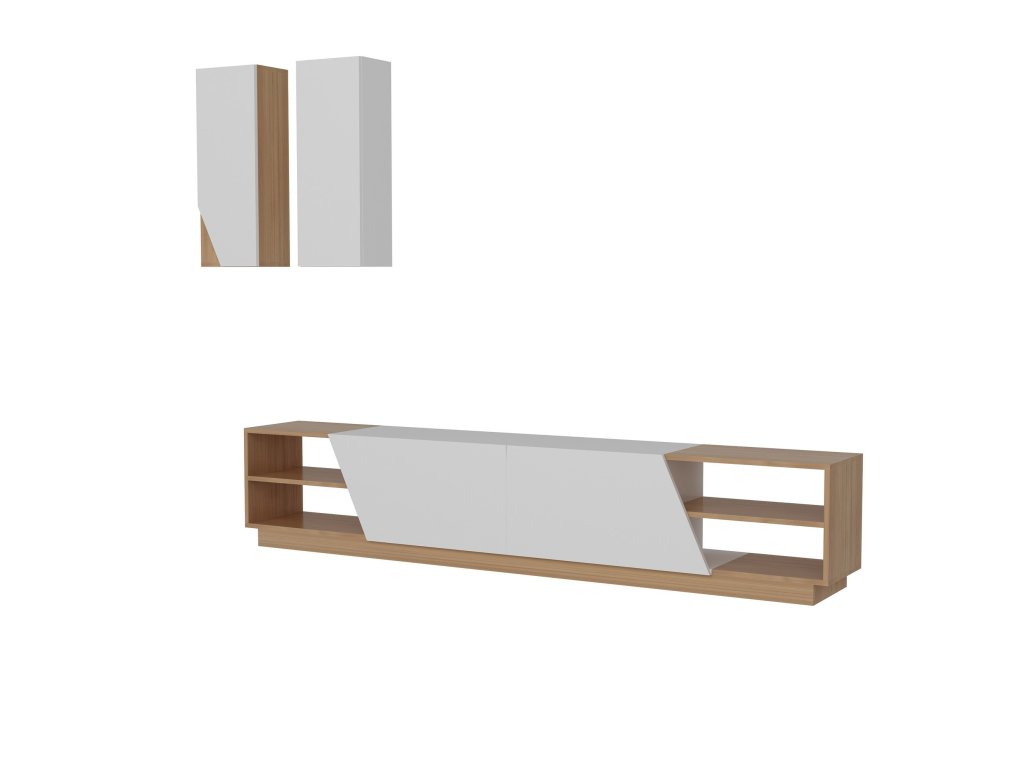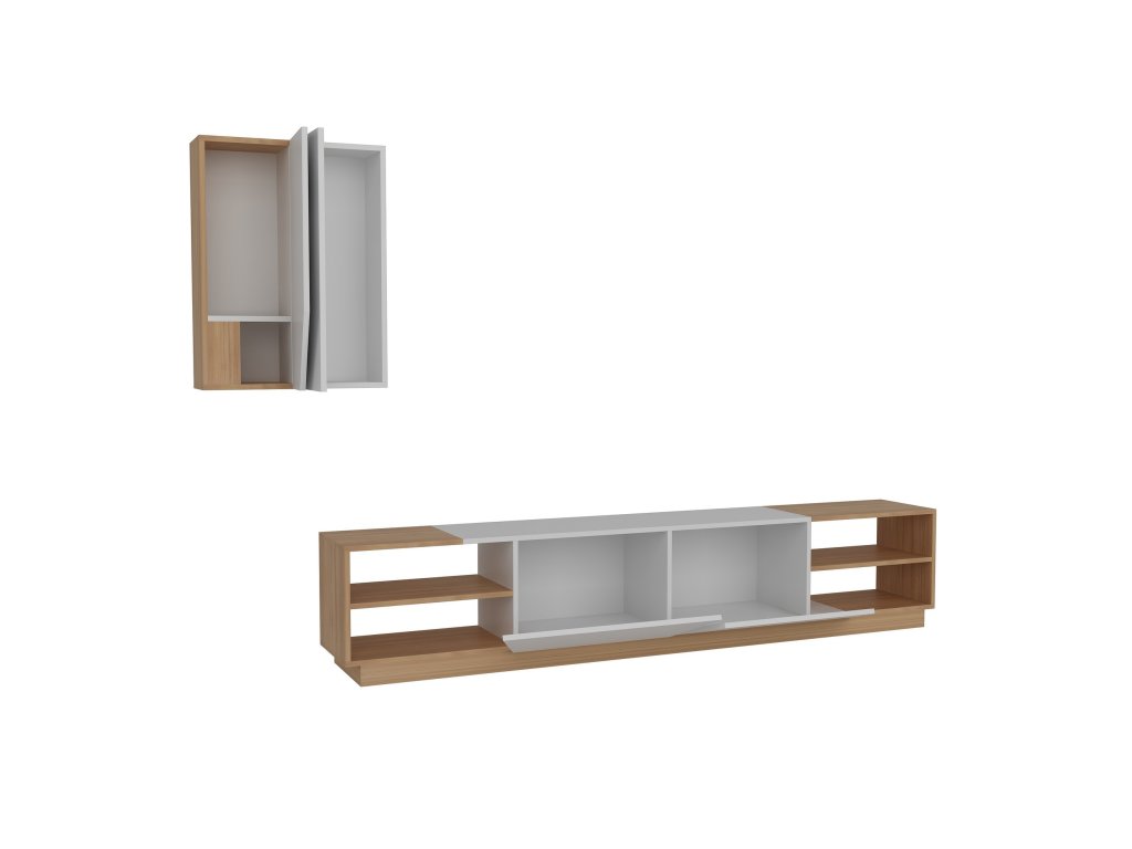 Kombinace dekoru světlého dřeva a bílé vytváří elegantní vzhled obývací stěny ZEBRA.
