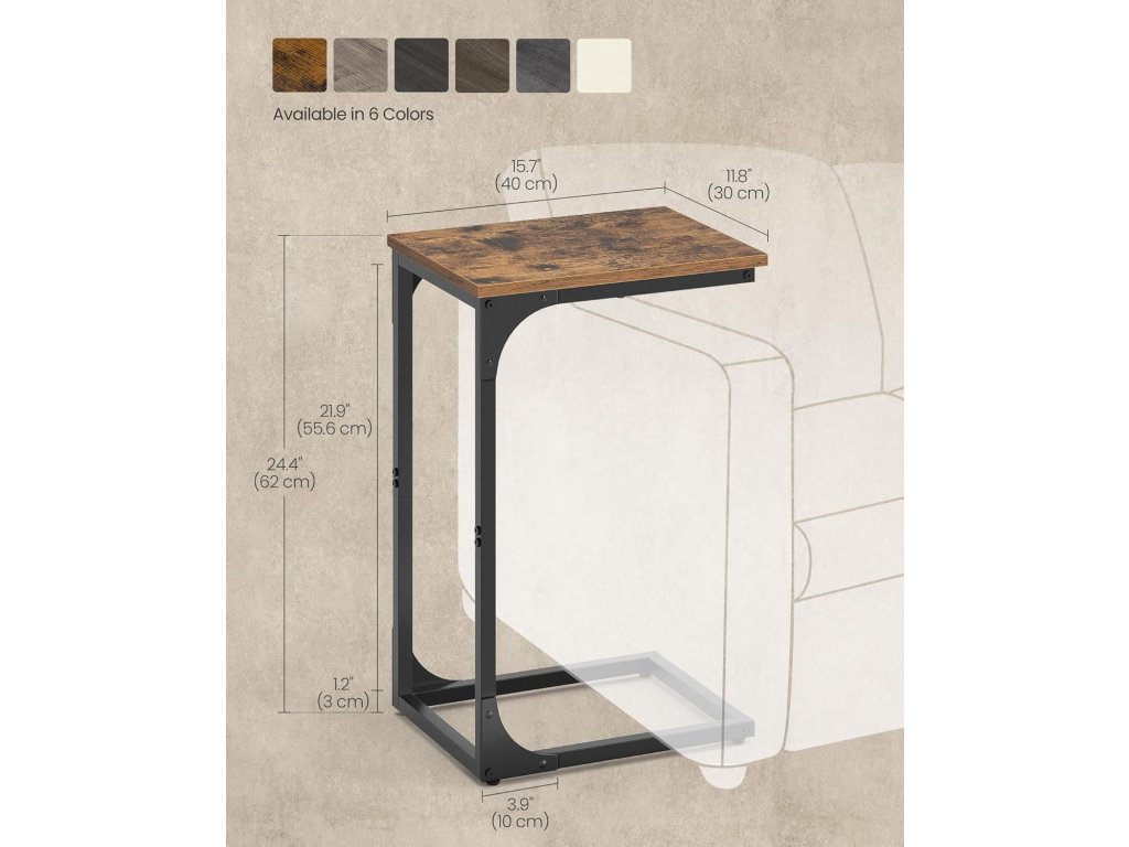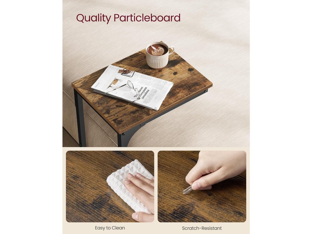 Odkládací stolek je vyroben z robustní ocelové konstrukce a kvalitní dřevotřískové desky a bude vám sloužit po mnoho let.