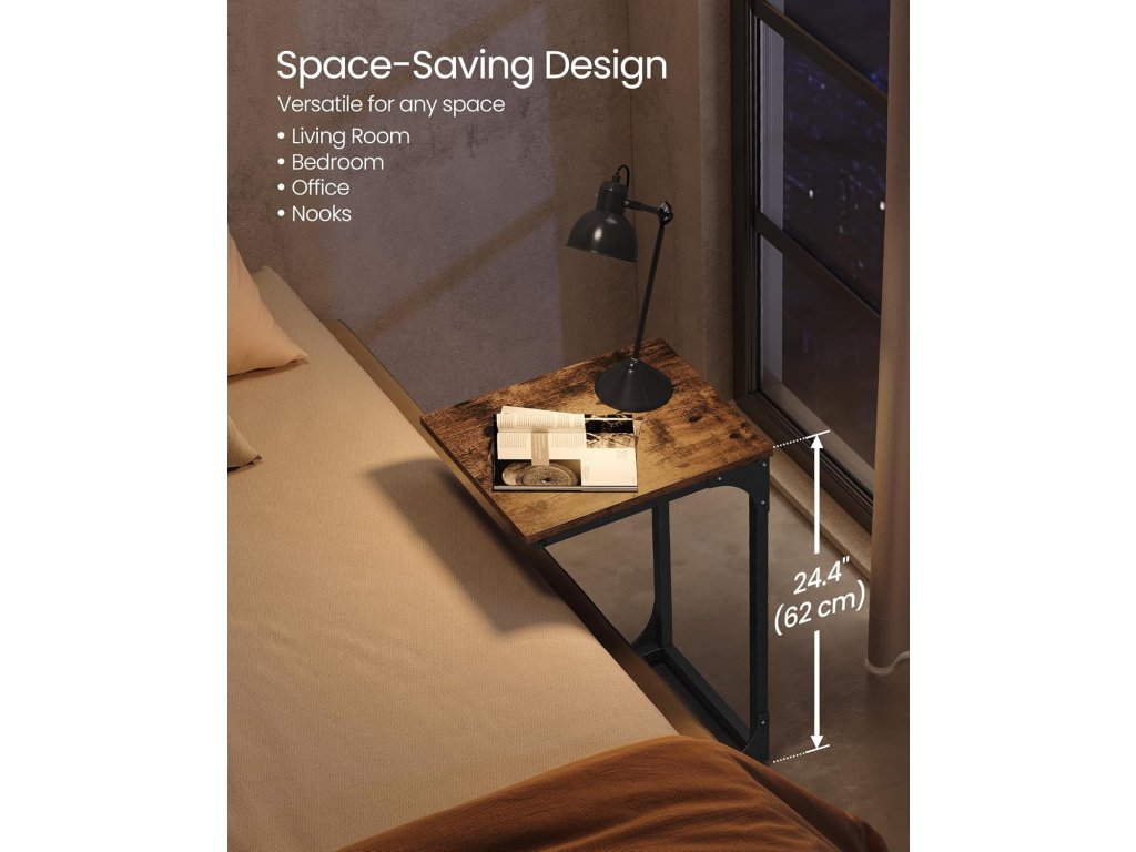 Díky designu ve tvaru písmene C se tento konferenční stolek snadno vejde vedle vaší pohovky nebo křesla.