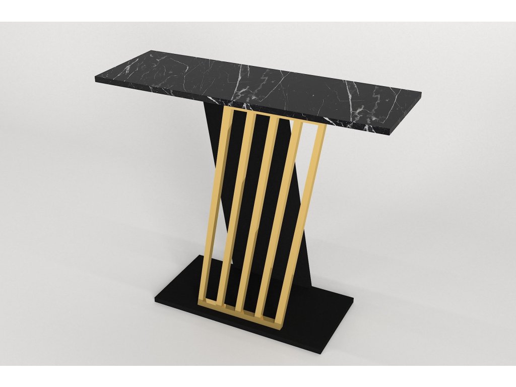 Odkládací stolek GRAVITY je vyrobený v kombinaci černé a mramorové barvy, které kontrastně doplňuje moderní zlatý prvek a tento celek nabízí poměrně velkou odkládací plochu.