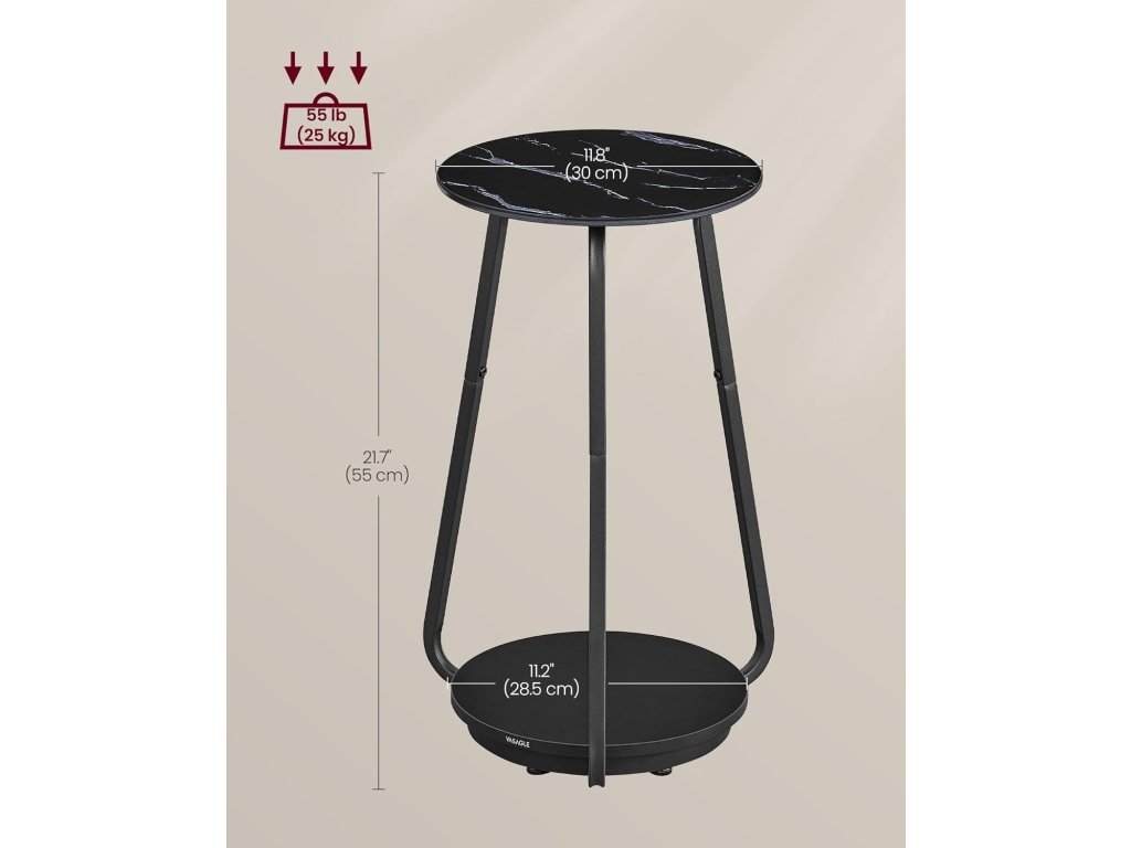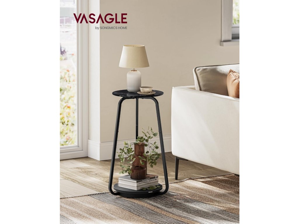 Dvoupatrový odkládací stolek, vyrobený z pevných ocelových nohou, kvalitního tvrzeného skla a prvotřídních dřevotřískových desek, nabízí stabilní a pevnou oporu po dlouhá léta a jeho maximální nosnost je 25 kg.