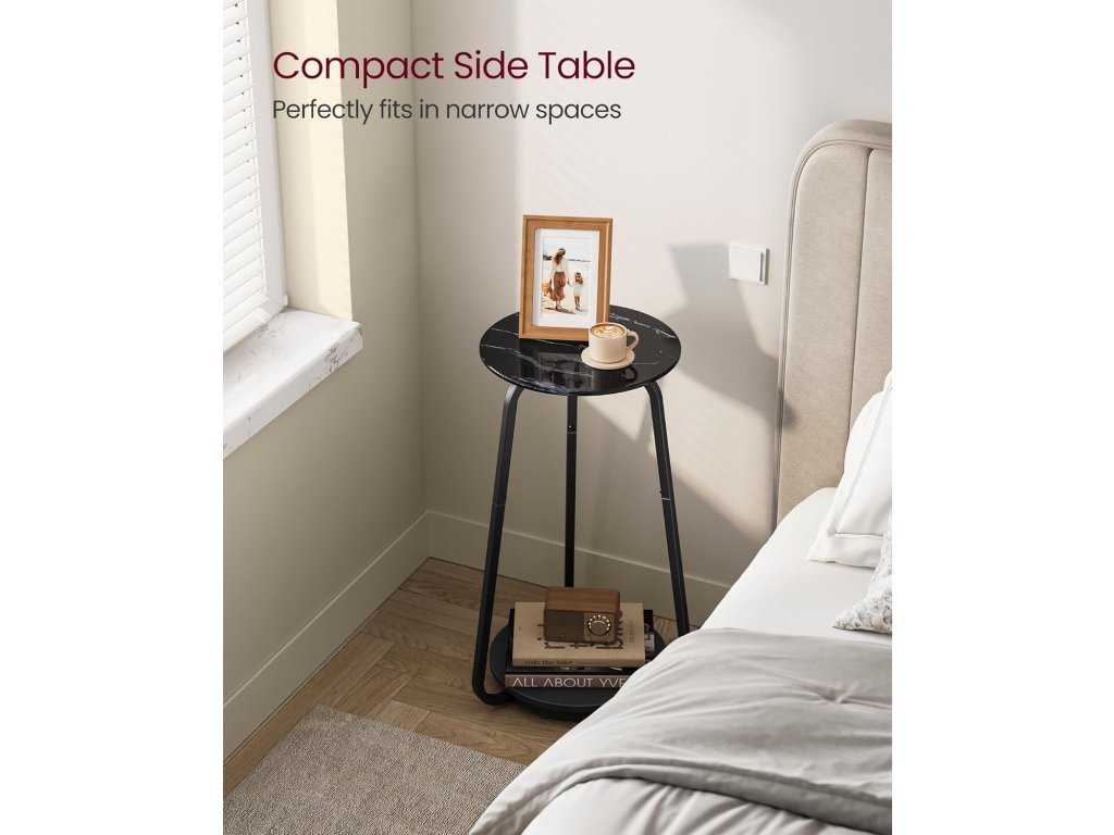 Odkládací stolek o rozměrech 30 x 55 cm (šířka x výška) je vybaven 2 otevřenými policemi, které poskytují praktický prostor pro vaše nezbytnosti, jako jsou kelímky na vodu, dálkové ovládání, telefon nebo časopisy, a udržují tak všechny potřebné předměty na dosah.