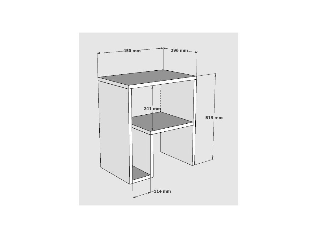 Rozměry horní police: Šířka: 45 cm Hloubka: 30 cm Výška: 51,8 cm