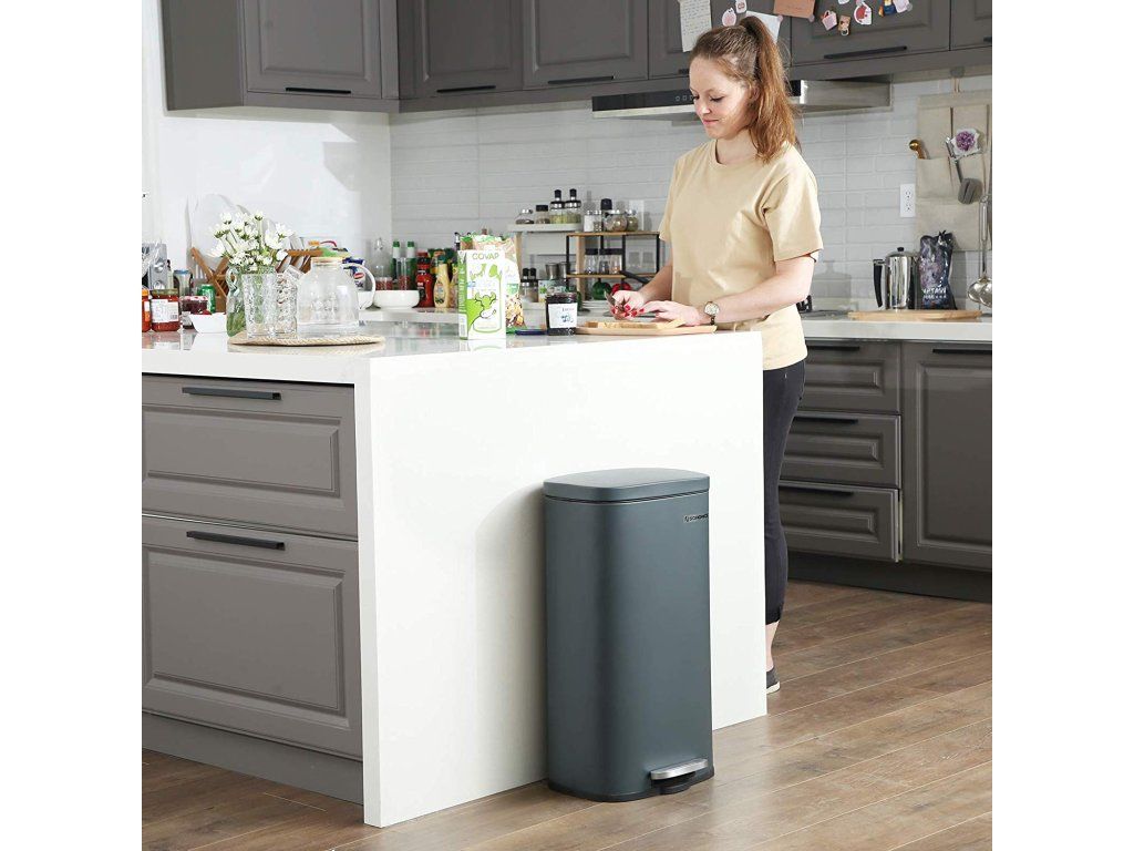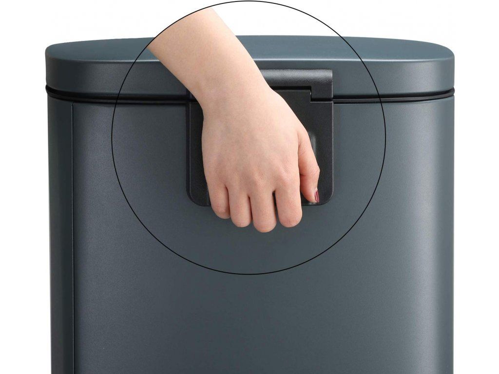 Ocelové tělo odpadkového koše je opatřeno práškovým nátěrem ve stříbrné barvě. Odnímatelná plastová vložka uvnitř koše zajišťuje snadnou manipulaci při jeho vyprazdňování. Pedál z nerezové oceli zajišťuje snadné a hygienické otevírání víka. Díky vestavěnému tlumiči se víko zavírá opravdu tiše. Spodní strana je opatřená černým plastovým podstavcem, který chrání podlahu před poškrábáním. Rukojeť na zadní části usnadňuje manipulaci s košem.