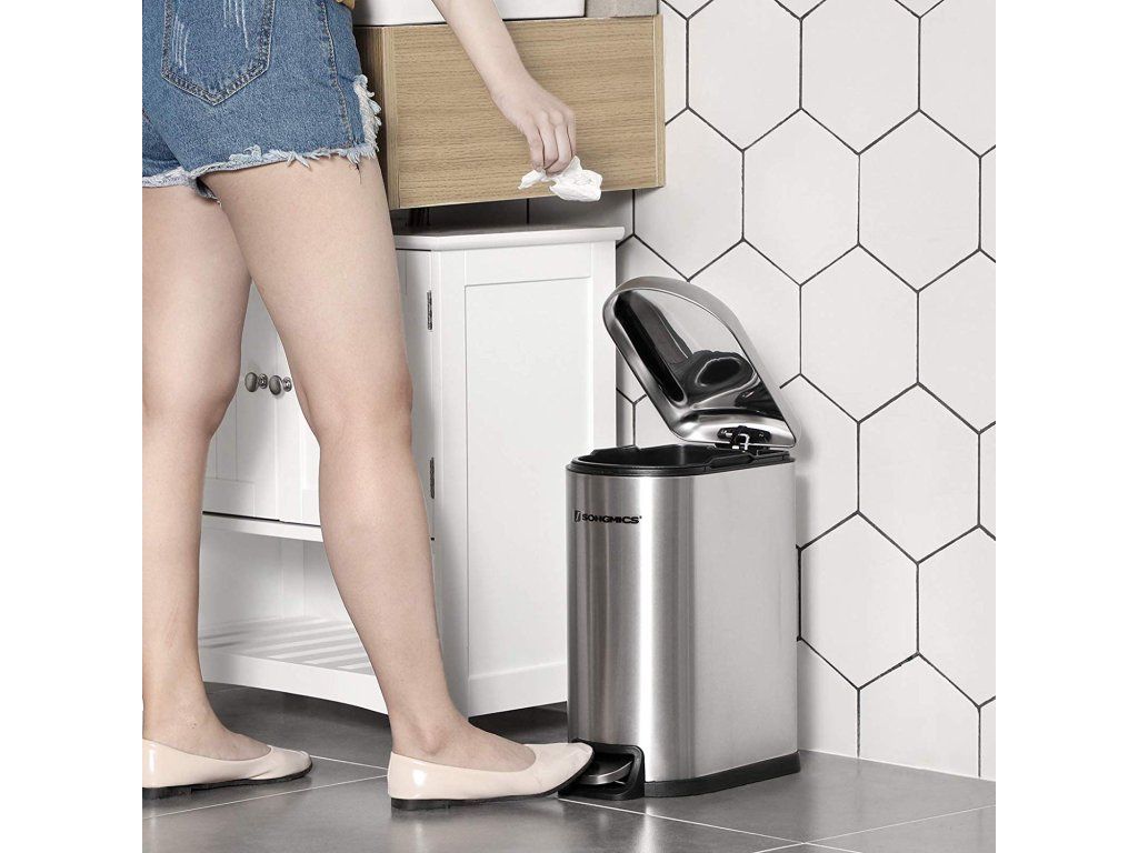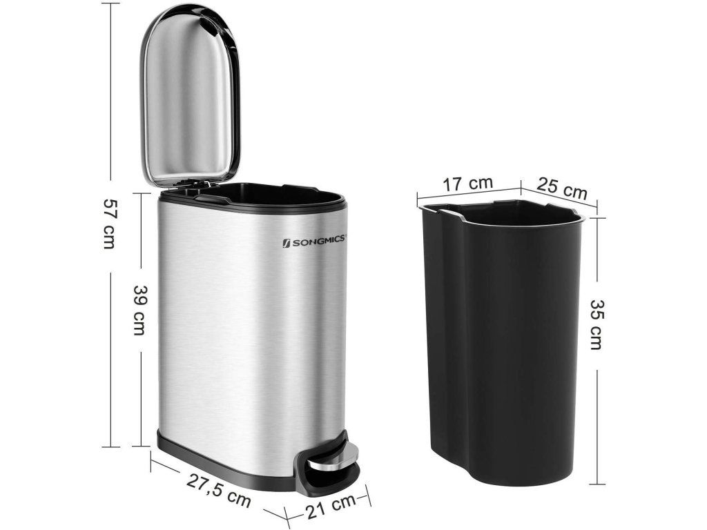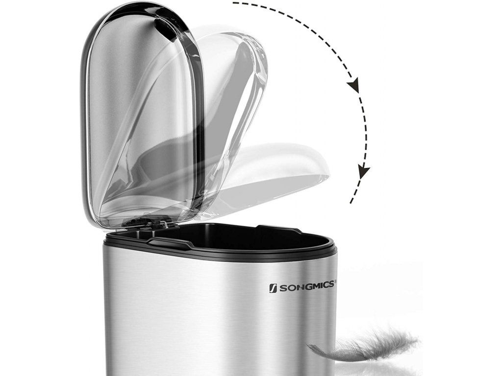 Ocelové tělo odpadkového koše je opatřeno práškovým nátěrem. Odnímatelná plastová vložka uvnitř koše zajišťuje snadnou manipulaci při jeho vyprazdňování. Pedál z nerezové oceli zajišťuje snadné a hygienické otevírání víka. Díky vestavěnému tlumiči se víko zavírá opravdu tiše. Spodní strana je opatřená černým plastovým podstavcem, který chrání podlahu před poškrábáním. Rukojeť na zadní části usnadňuje manipulaci s košem.