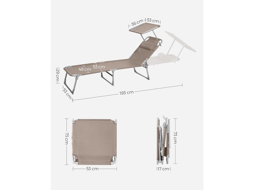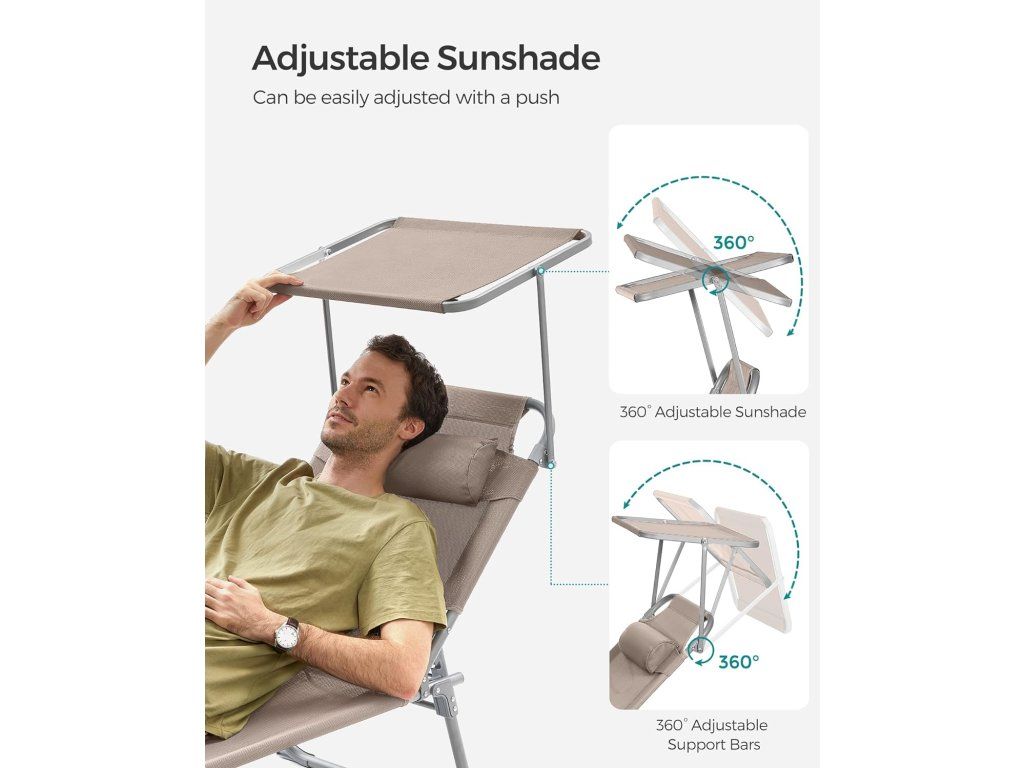 Zahradní lehátko je vybaveno sluneční clonou, která vám umožní číst si na zahradě časopisy a zároveň si užívat slunce, aniž byste byli oslněni. Úhel sluneční clony můžete snadno nastavit rukou, nemusíte vstávat.