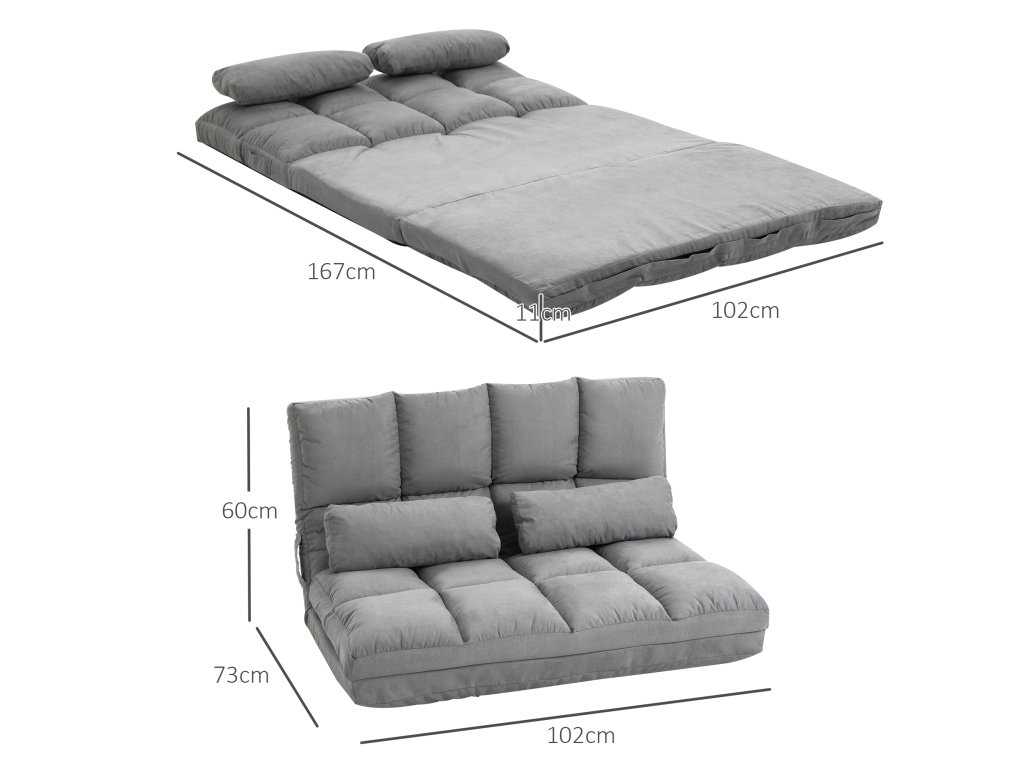 Kombinace pohovky a rozkládacího gauče 2 v 1 od společnosti HOMCOM je relaxační alternativou pro malé pokoje. Pohodlně čalouněné opěradlo a sedák jsou potaženy sametovou látkou a nabízejí dokonalou relaxaci. Třícestně polohovatelné opěradlo umožňuje pohovce rychle nabýt tvaru lůžka a poskytnout tak útulné místo ke spánku. Kvalitní kovový rám zajišťuje potřebnou stabilitu a pohovku lze snadno nastavit.