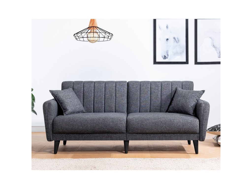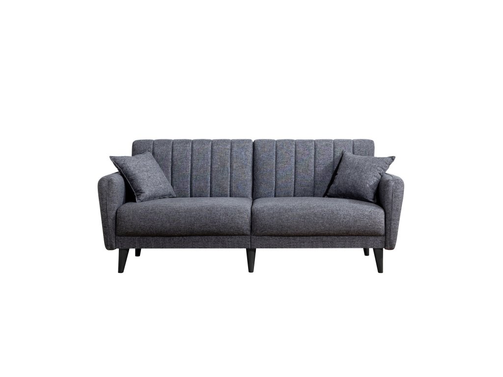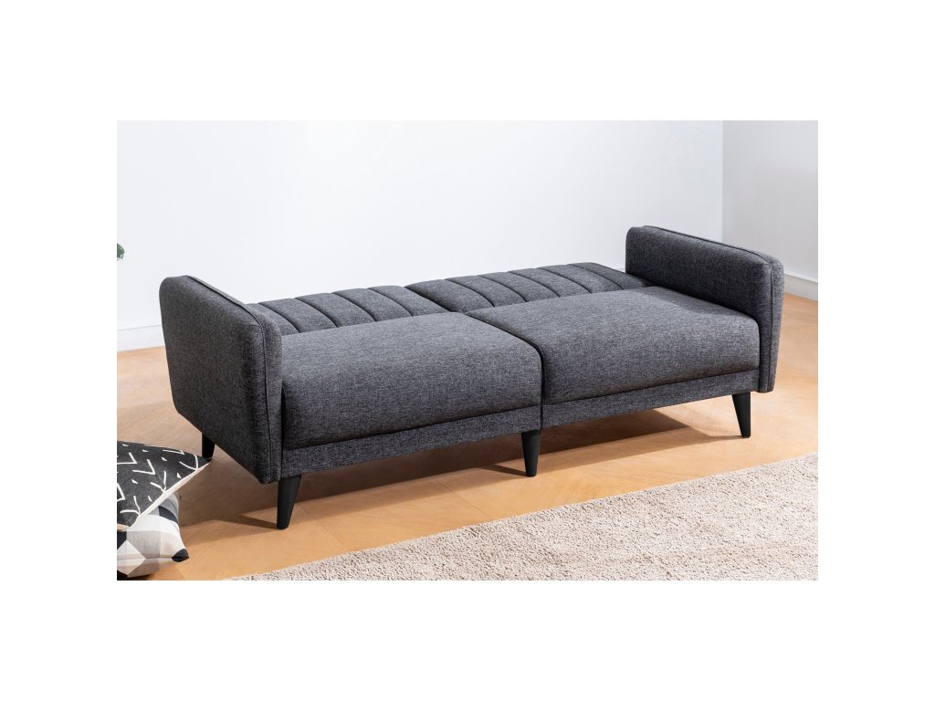 AQUA je dvoumístná rozložitelná pohovka a ve stejném designu i křeslo s pohodlným polstrováním v antracitové barvě.