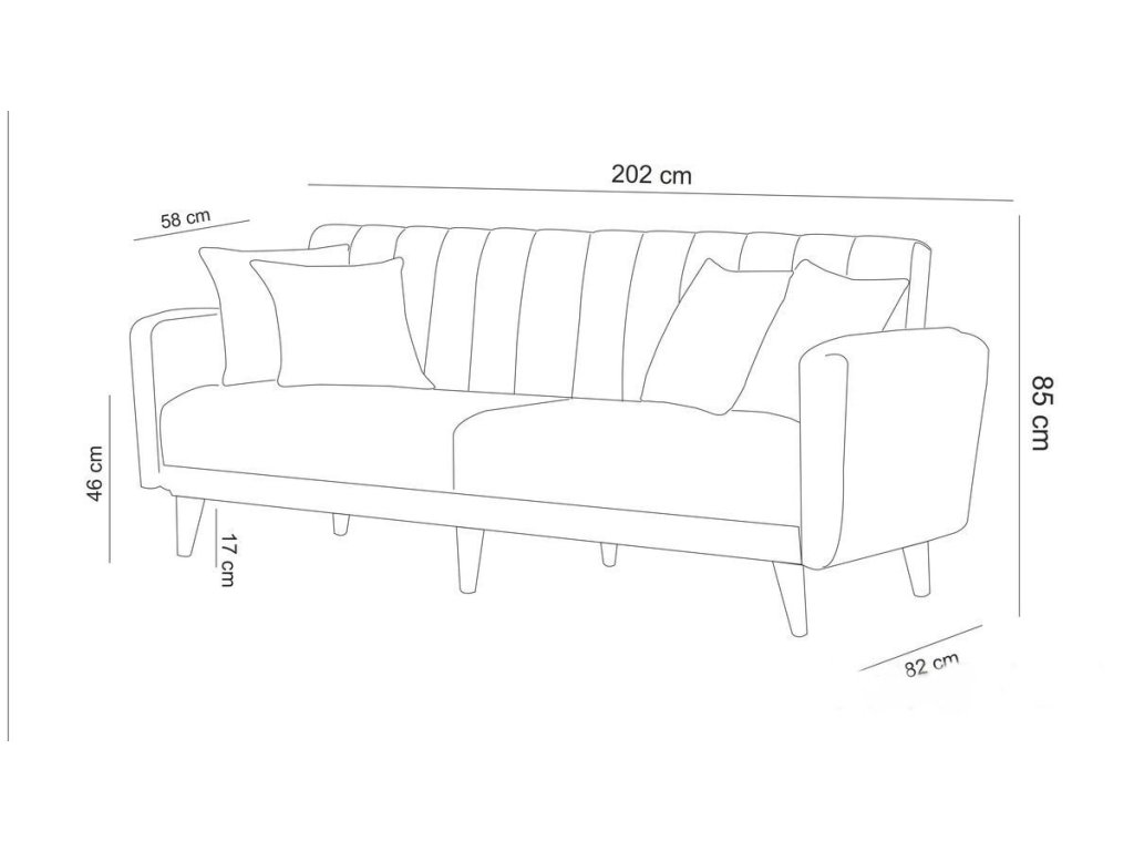 Rozměry sedáku pohovky: Šířka: 205 cm Hloubka: 58 cm Výška: 46 cm