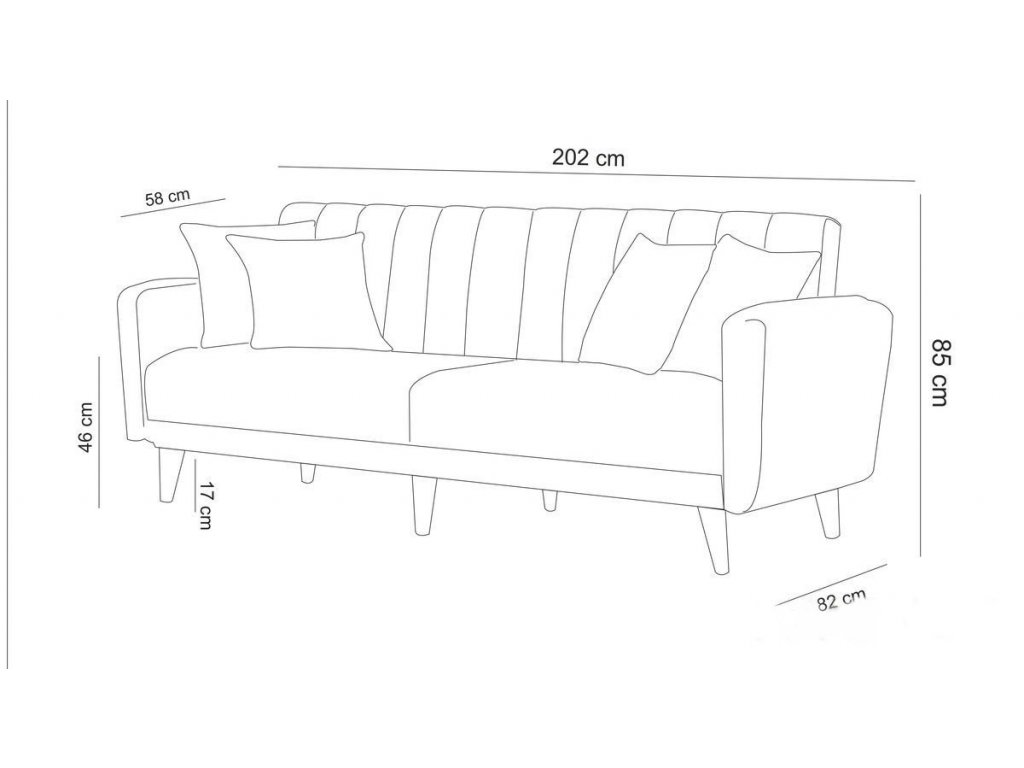 Rozměry sedáku pohovky: Šířka: 205 cm Hloubka: 58 cm Výška: 46 cm