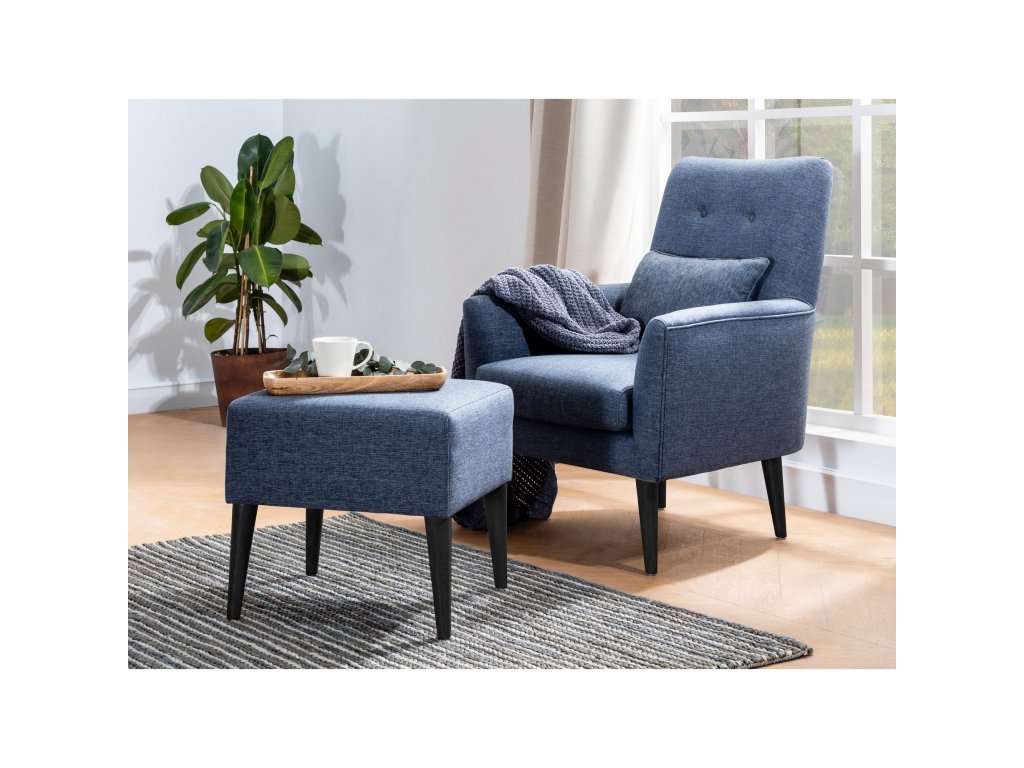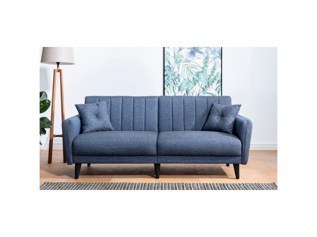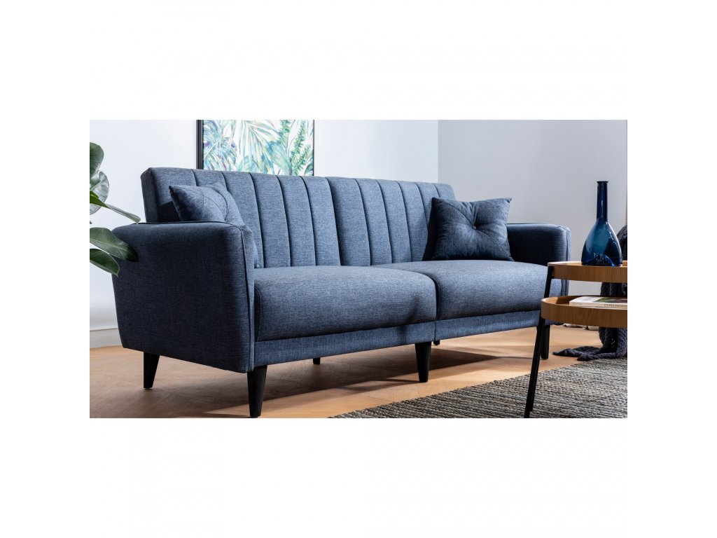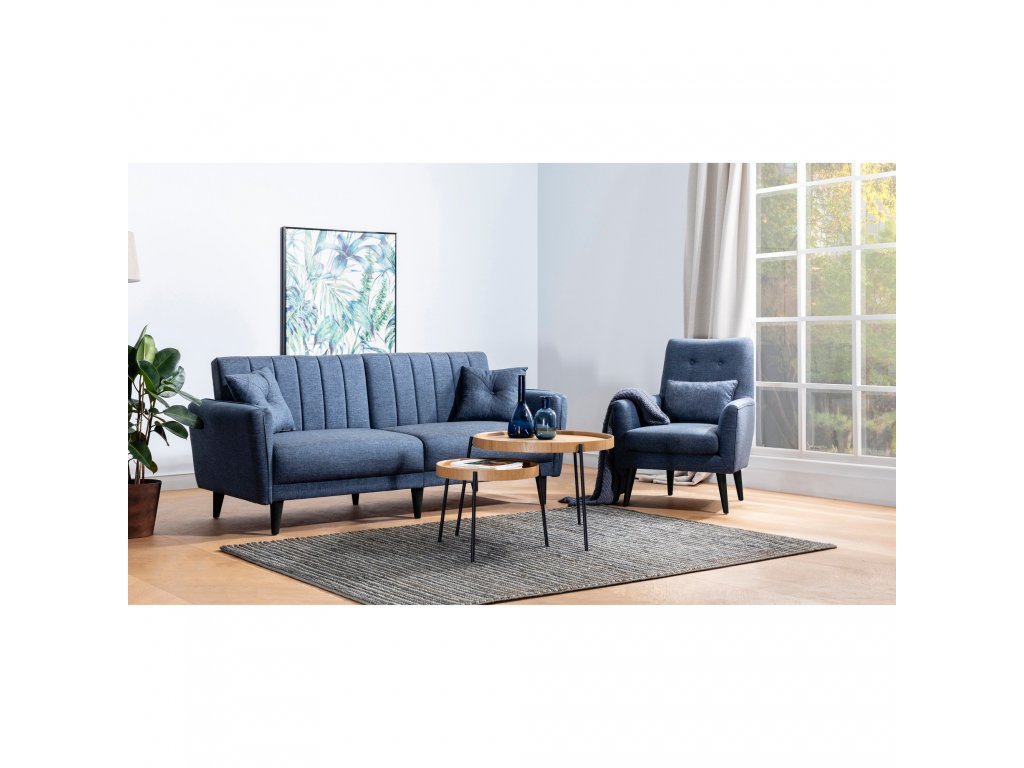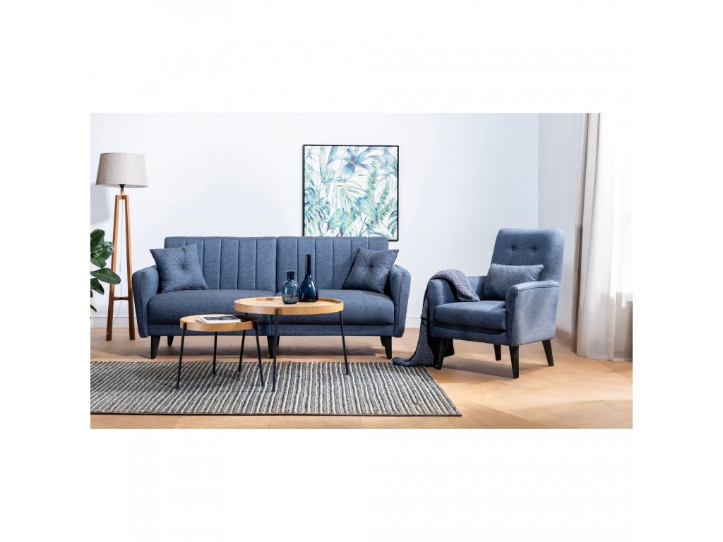 AQUA představuje dvoumístnou rozložitelnou pohovku a ve stejném designu i křeslo s pohodlným polstrováním v modré barvě.