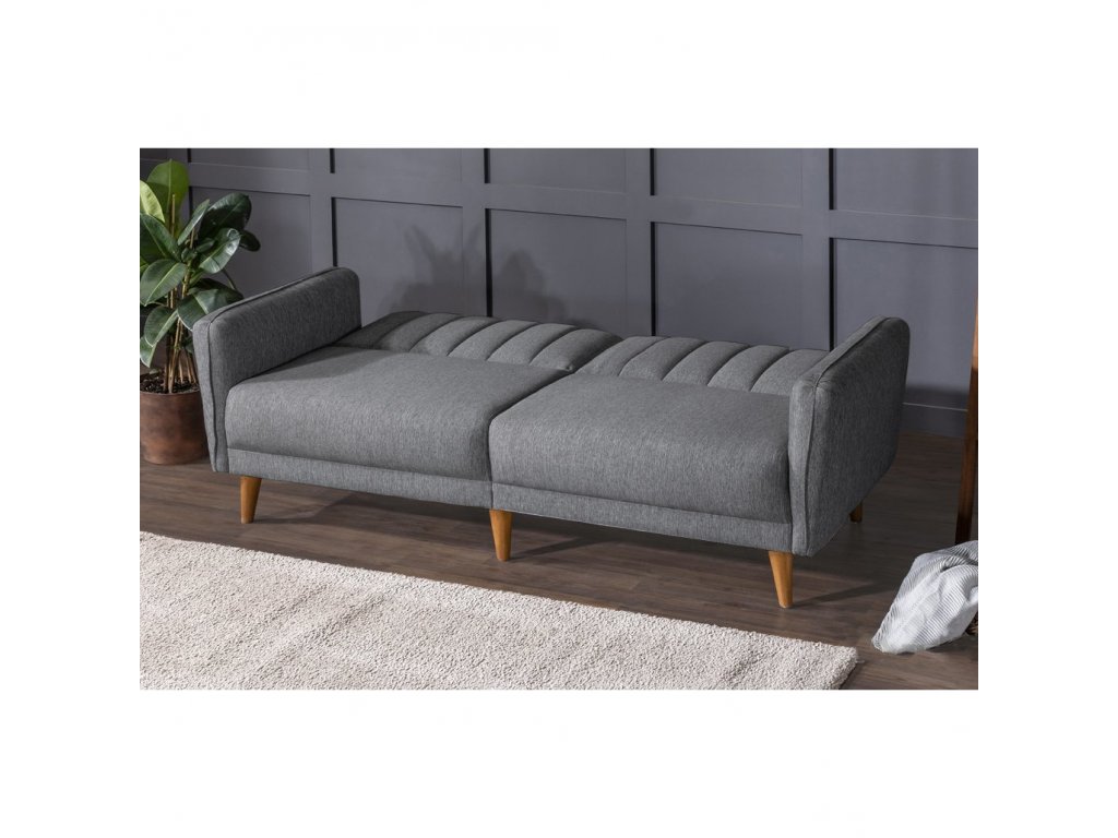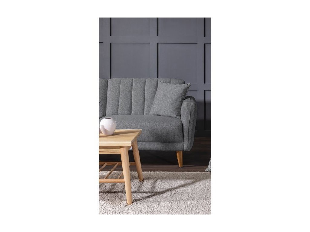 AQUA představuje dvoumístnou rozložitelnou pohovku a ve stejném designu i křeslo s pohodlným polstrováním v šedé barvě.