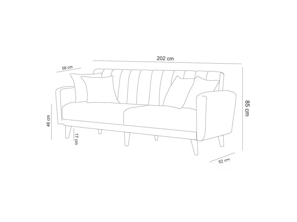 Rozměry pohovky: Šířka: 202 cm Hloubka: 82 cm Výška: 85 cm