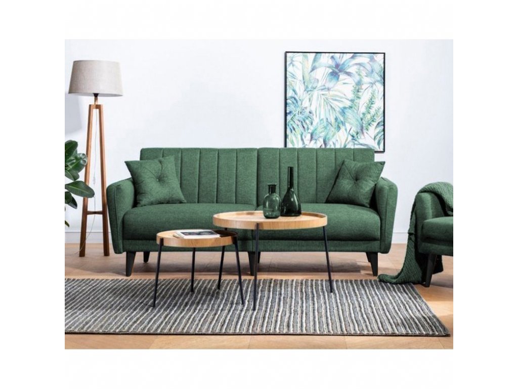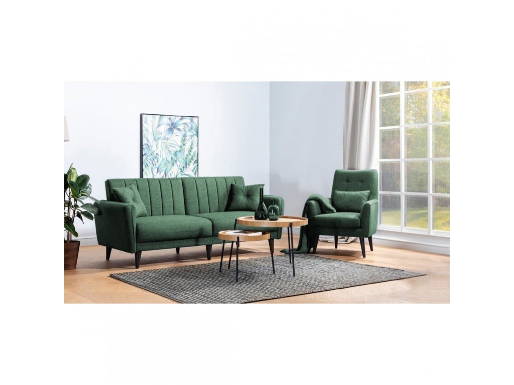 AQUA představuje dvoumístnou rozložitelnou pohovku a ve stejném designu i křeslo s pohodlným polstrováním v zelené barvě.