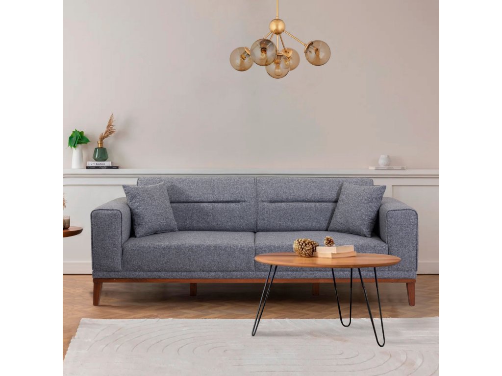Představujeme pohovku s křeslem LIONES v šedé barvě jakožto dokonalý doplněk do vašeho obývacího pokoje. Tato pohovka, vyrobená z robustního rámu ze 100% habrového dřeva a čalouněná vysoce kvalitní látkou ze 100% polyesteru, vyzařuje eleganci i odolnost.