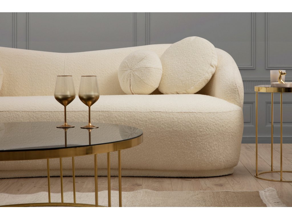 Představujeme vám velice elegantní trojmístnou pohovku ANCONA v krémové barvě, která je navržena tak, aby pozvedla váš obývací pokoj. Tato pohovka, vyrobená z MDF desek, s robustním rámem z bukového dřeva, vyzařuje odolnost a nadčasovou eleganci. Čalounění ze 100% polyesterové tkaniny dodává dotek luxusu a zároveň zajišťuje snadnou údržbu pro vytížené domácnosti.