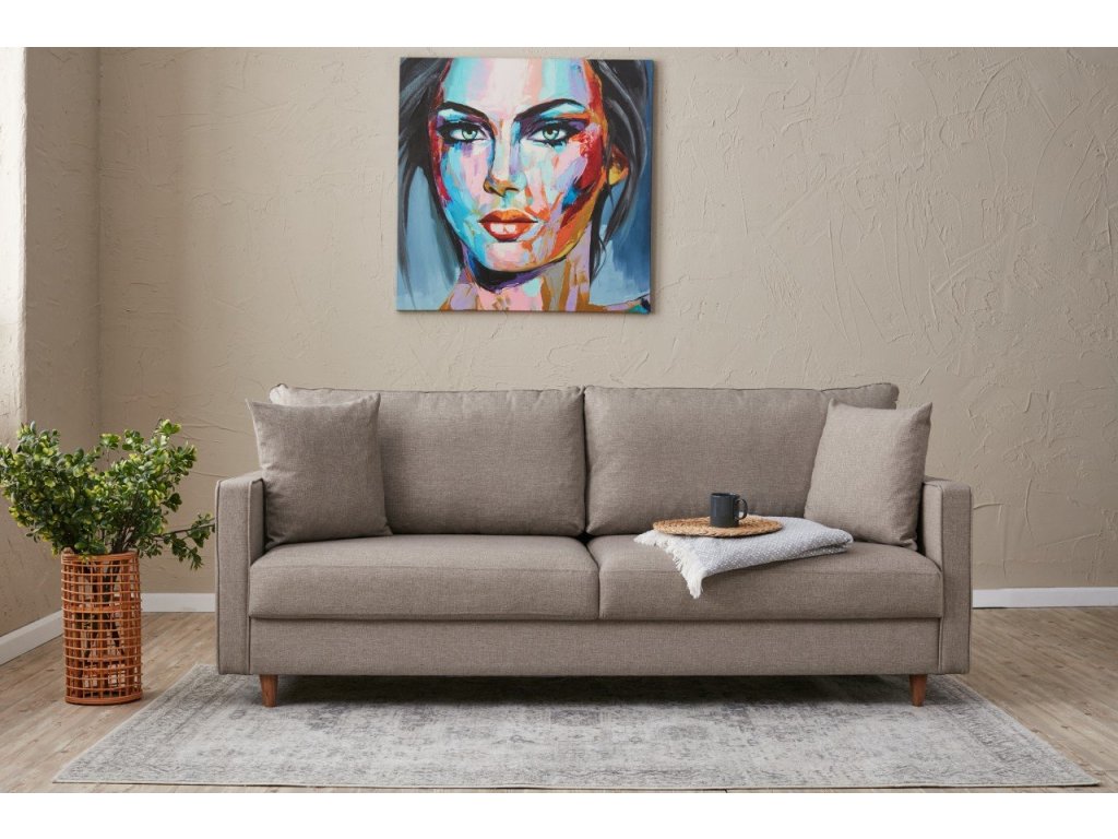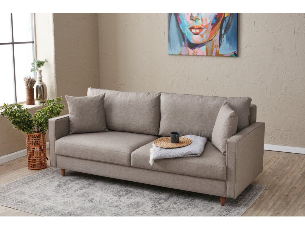 Krémová trojmístná pohovka EVA je vybavena snadno čistitelnou látkou, takže udržení jejího čistého vzhledu je hračka. Rozlité tekutiny a nepořádek jednoduše setřete bez jakýchkoli potíží. Neuvěřitelnou vychytávkou je otočné opěradlo, které umožní rozšíření hloubky sedáku, na kterém je možné i ležet.