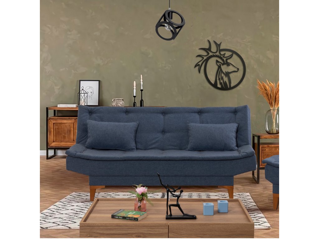 Představujeme vám modrou trojmístnou rozkládací pohovku SANTO, vaši budoucí dokonalou oázu pohodlí a relaxace! Precizně vyrobená pohovka je skutečným mistrovským dílem, které v sobě spojuje styl, pohodlí a funkčnost. Tato variabilní rozkládací pohovka, vyrobená z bukového rámu a čalouněná 100% polyuretanovo-akrylovou látkou modré barvy je navržena tak, aby odolala i zkoušce času.