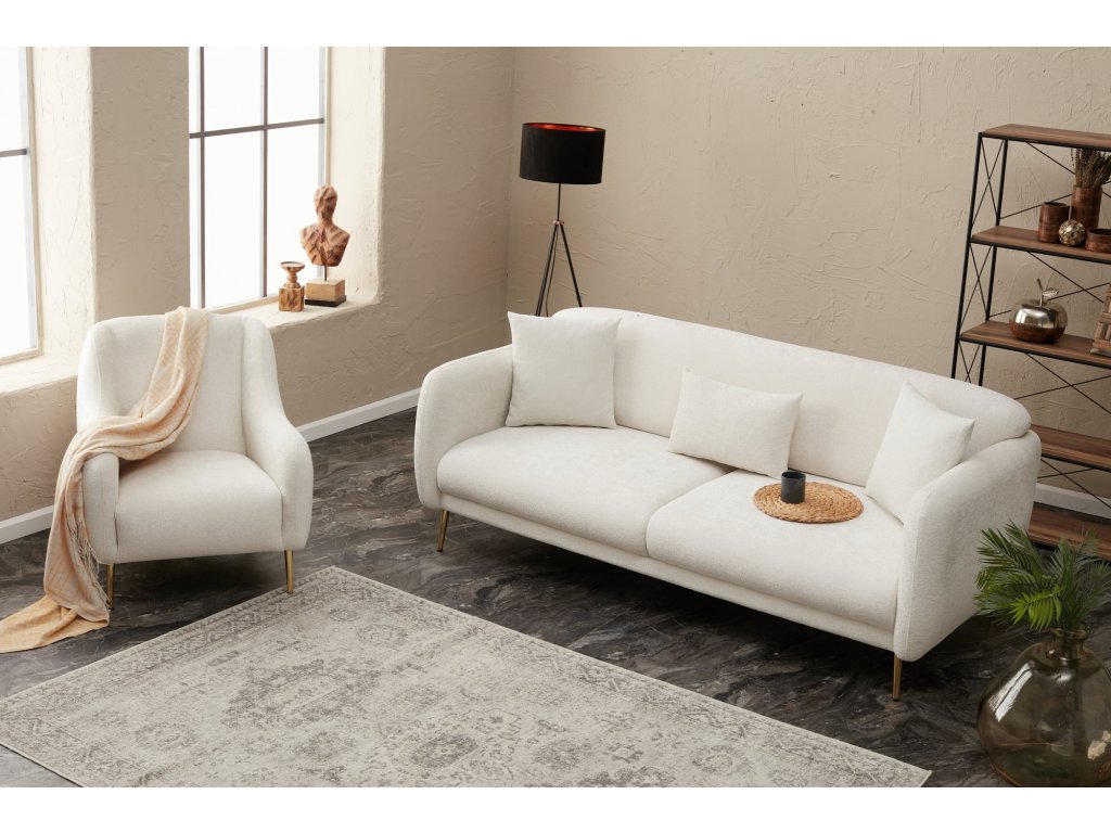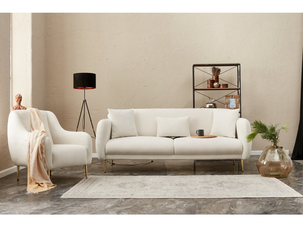 Tuto rozkládací pohovku SIMENA tvoří vysoce kvalitní materiály zajišťující luxusní posezení. Pěna 28 DNS poskytují výjimečnou oporu a zajistí vám hodiny odpočinku v maximálním pohodlí. Kovové 17 cm vysoké nohy dodávají celé pohovce stabilitu a podporují i moderní design. Rozkládací pohovka SIMENA s krémovým čalouněním poskytuje nejen maximální pohodlí, ale také všestranný prostor pro občasné relaxování nebo i pro delší odpočinek.