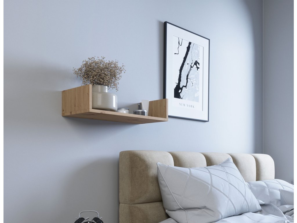 Nástěnná police VISSTA je dokonalým řešením pro ty, kteří oceňují moderní minimalistický design. Hodí se dokonale do interiérů ve skandinávském stylu. Police je vyrobena z vysoce kvalitní laminované dřevotřísky o tloušťce 16 mm, která zajišťuje trvanlivost a odolnost vůči každodennímu používání. Přední strana police je zakončena PVC lemem v barvě, která ladí s dekorem, což jí dodává jednotný a estetický vzhled.