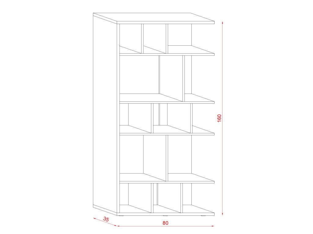 K dispozici ve dvou barevných kombinacích - dub wotan s bílou a dub wotan s černou matnou povrchovou úpravou. Jedná se o velmi elegantní kus nábytku, který vám umožní efektivně vystavit vaše domácí memorabilie, knihy a alba a jejich prolínání s rostlinami v květináčích vám umožní vytvořit velmi působivou "zelenou stěnu".