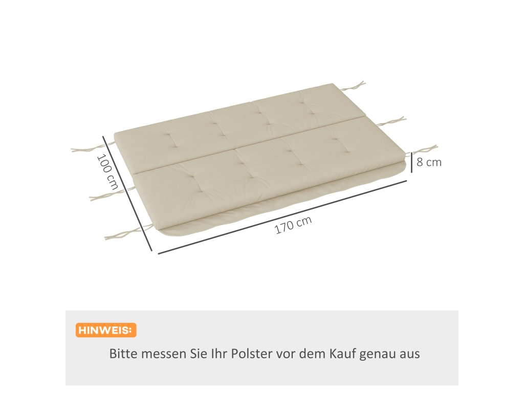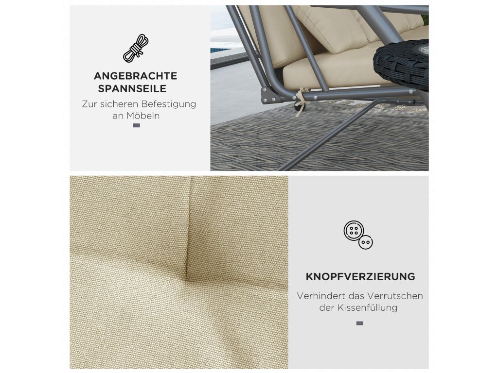 Tento sedací polštář od společnosti Outsunny je skvělým doplňkem pro vaši houpací lavici. Poskytuje mimořádné pohodlí. Vnější materiál je voděodolný a prodyšný. Polštář na křeslo se velmi snadno čistí a udržuje. Měkká výplň poskytuje dostatek dodatečného pohodlí. Polštář je navržen tak, abyste jej mohli bezpečně připevnit k venkovnímu nábytku a zabránit tak jeho sklouznutí. Všívání dodává polštáři křesla jedinečný vzhled a vylepší každou zahradní houpačku.