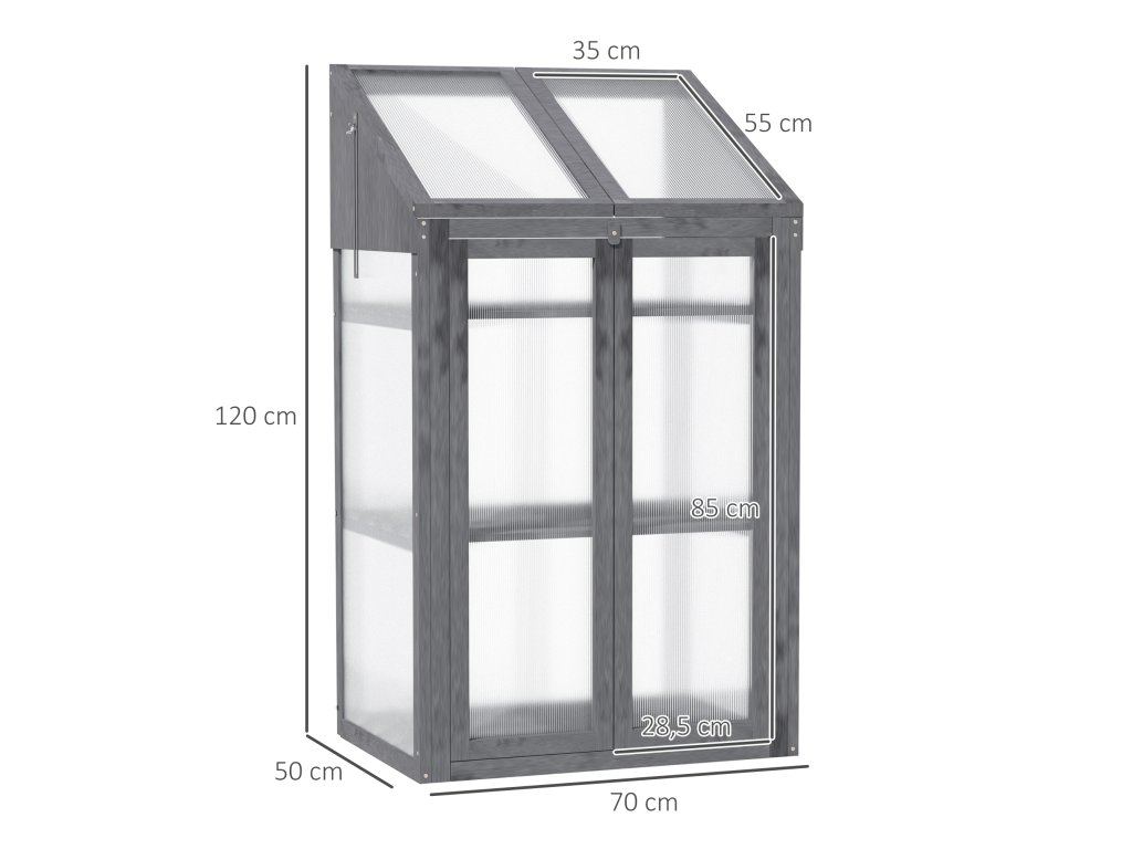 Mini skleník od společnosti Outsunny je ideální pro péči o rostliny. Robustní rám smrkového skleníku zaručuje stabilitu a průhledné polykarbonátové panely zajišťují optimální přísun světla a akumulaci tepla, což je ideální pro klíčení semen nebo ochranu rostlin ke konci sezóny. Se třemi odnímatelnými policemi pro uspořádání rostlin. Tento skleník poskytuje ideální teploty pro zdravý růst rostlin.