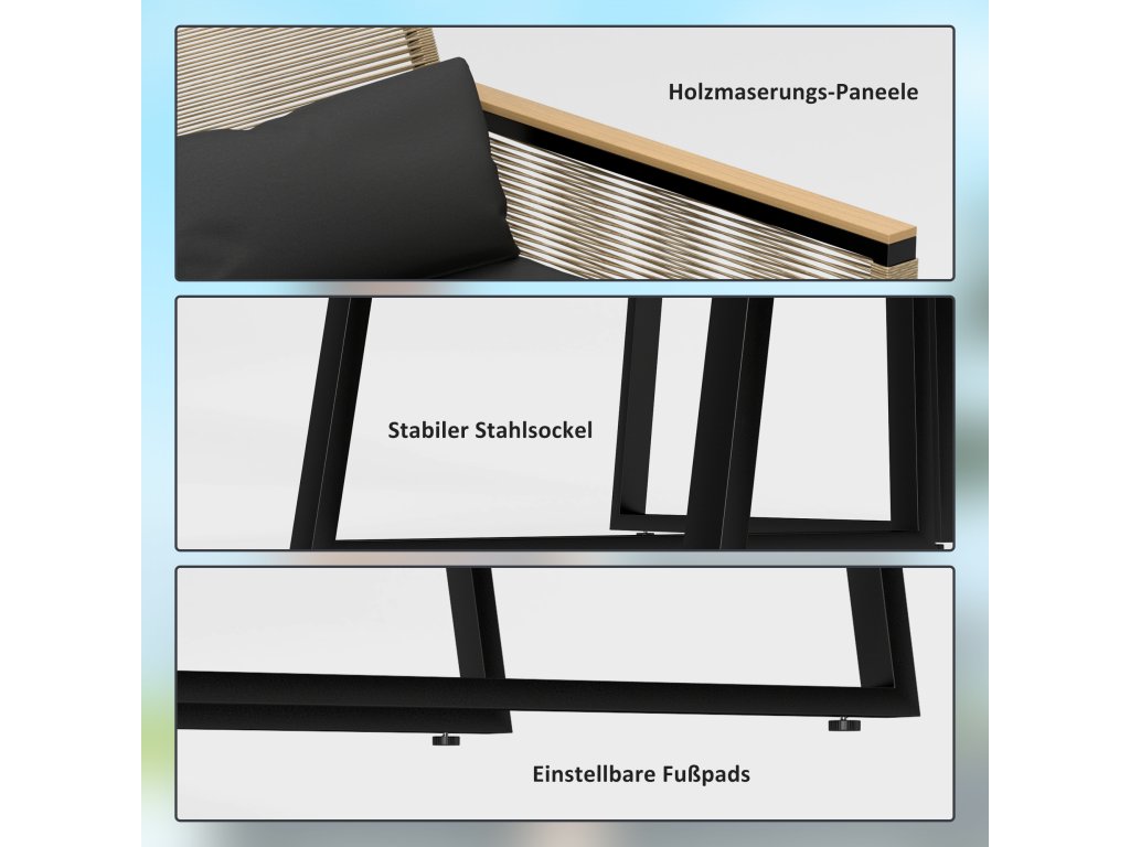 - Nastavitelné podložky pod nohy zahradní soupravy zabraňují uklouznutí a poškrábání